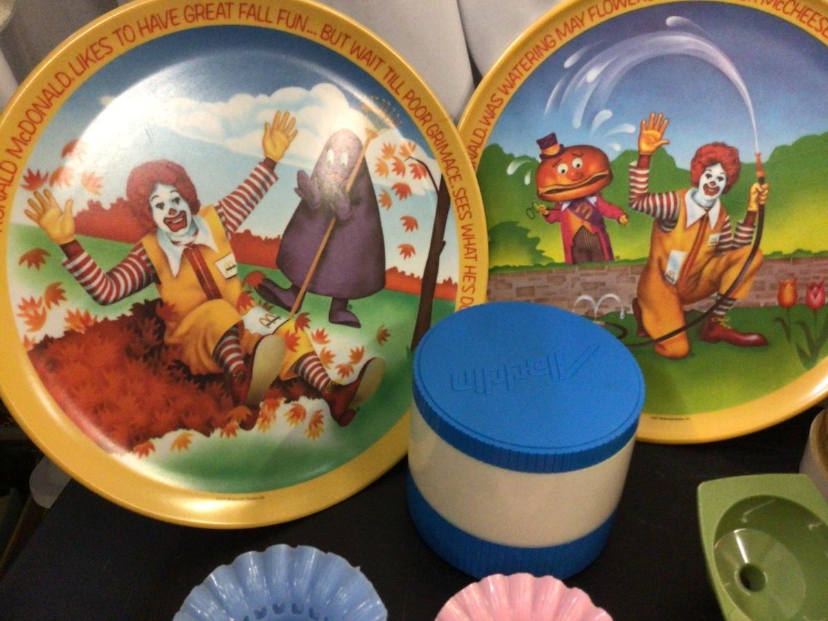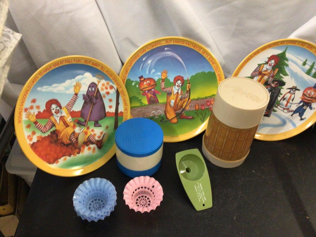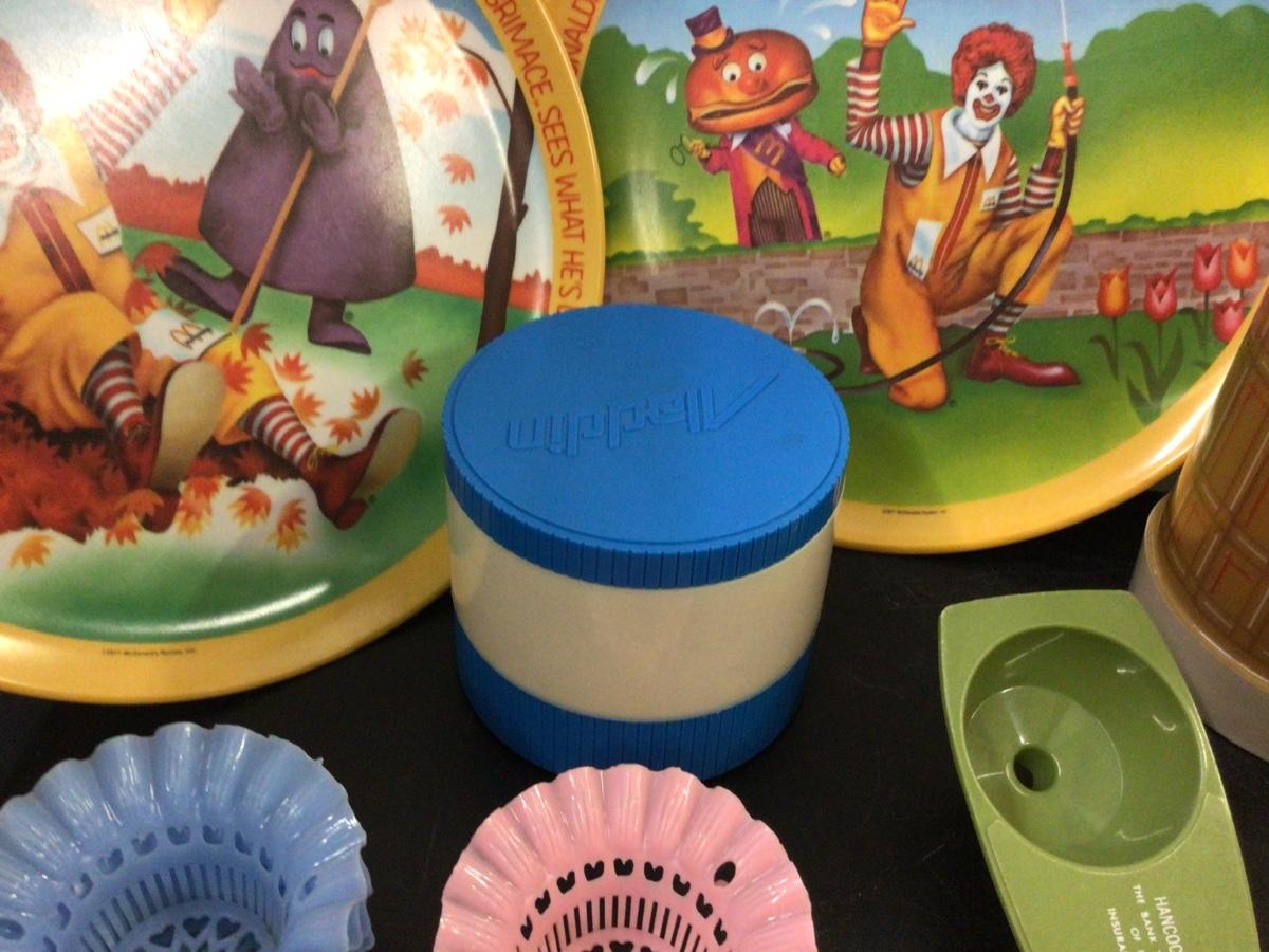 McDonald Plates, Aleddin Thermos, Egg Separator, Cup Cake Liners