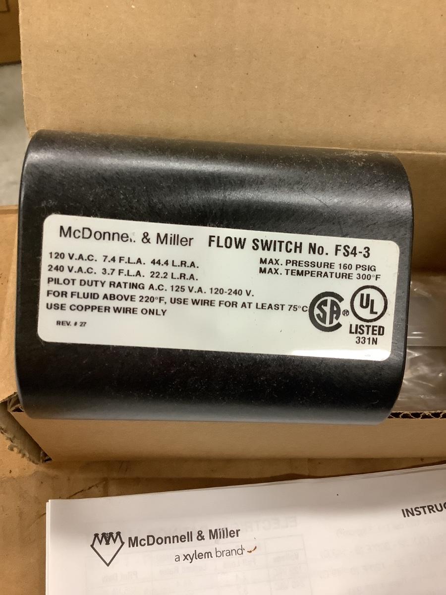 McDonnell & Miller FS4-3 General Purpose Flow Switch 114400 1" NIB