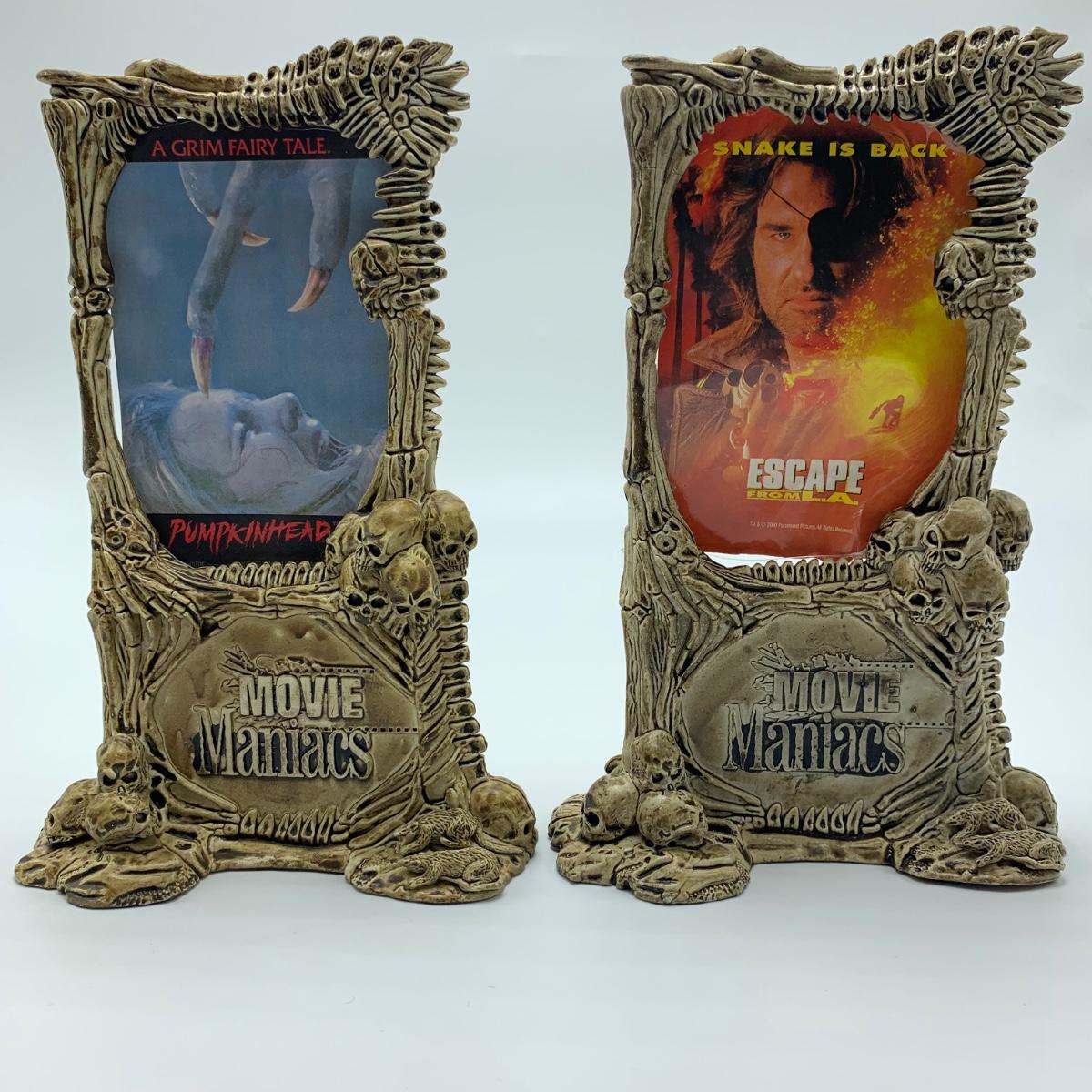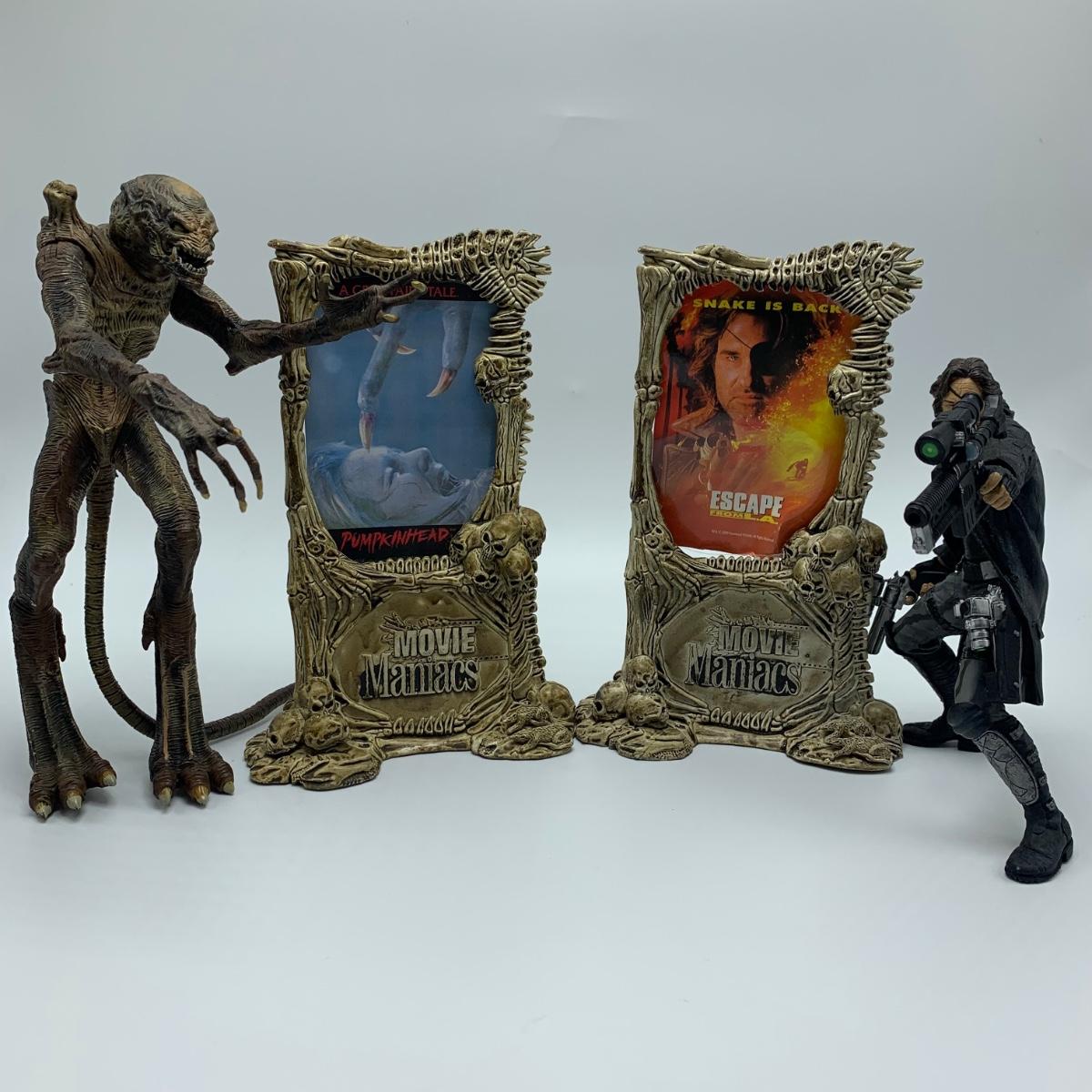 Two McFarlane Toys action figures with mini movie posters. One figure and poster is from Pumpkinhead and the other is from Escape from L.A. The Pumpkinhead figure is 9” tall.