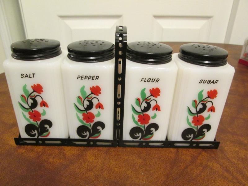 McKee 4 Piece Shakers Set With Rack - Red Flowers with Black Leaves