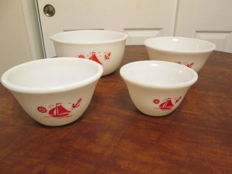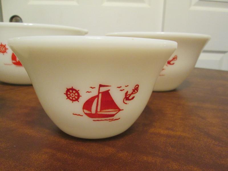 McKee Glass Bowl Set - Red Ships/Sailboats