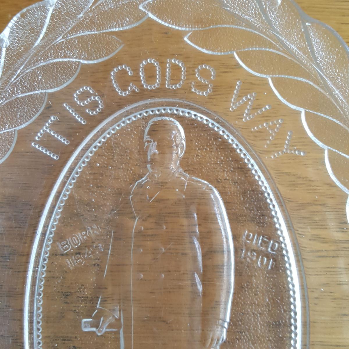 This auction lot is for a McKinley Memorial Plate. William McKinley was the 25th President of the USA. He was assassinated on September 14, 1901. The country mourned for his loss. This is a memorial plate that was made at that time for folks who wanted to remember his sacrifice in service to our country. Great historical collectors item.. Measures about 10.5-inches at its longest point.