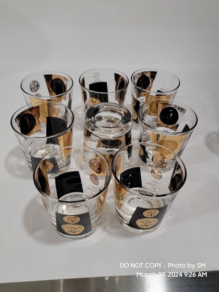 2. 8 shorter rocks glasses - some gold rubbing off on all.