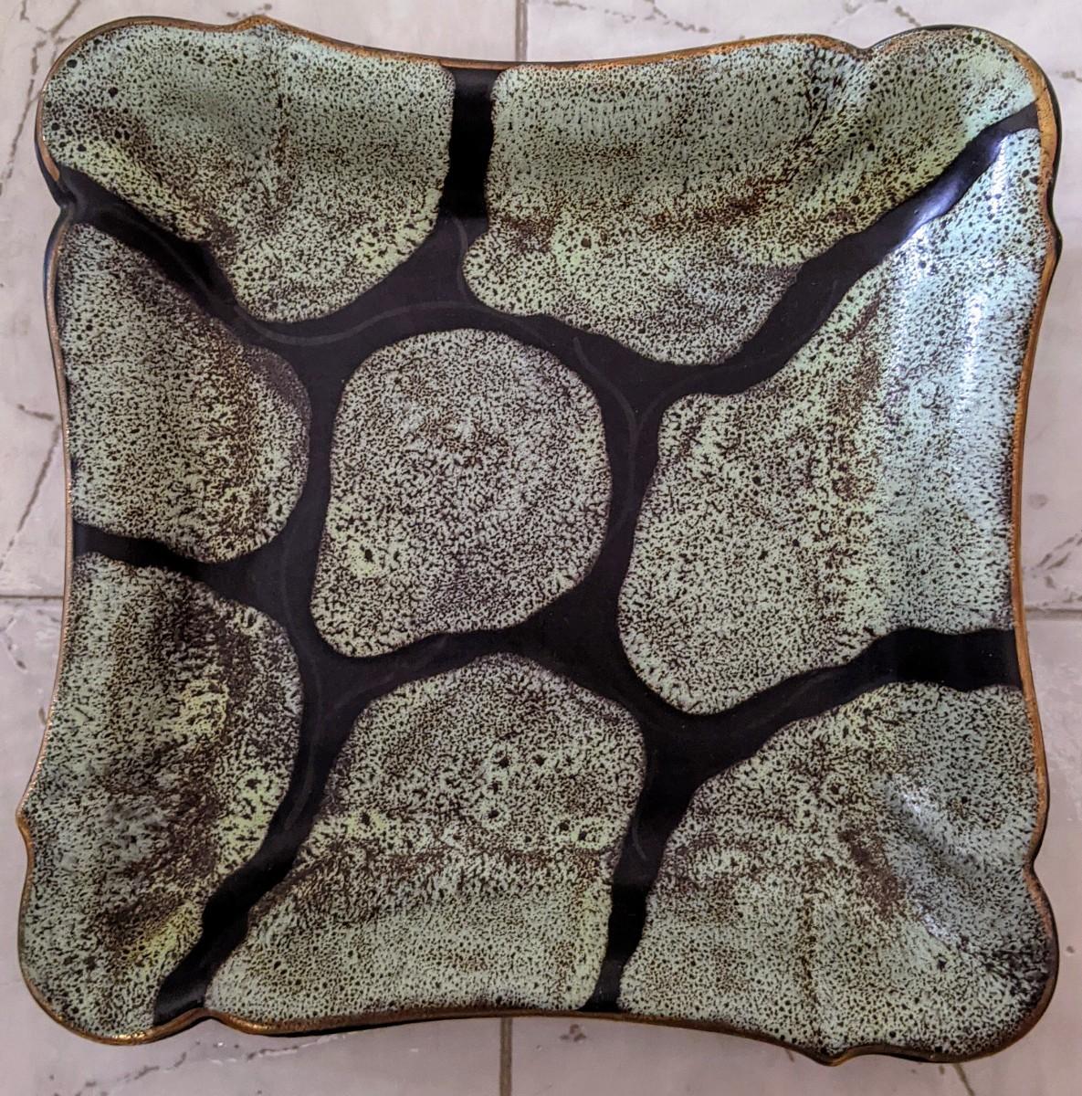 MCM 1950's Trinket Ashtray Green speckle glaze on black Ceramic German? No. 706