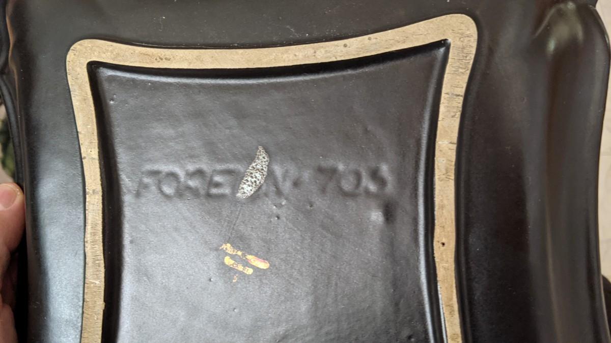After some research, I found a triangular bowl with the same glaze from Germany. The back of this item says "Foreign - 706"