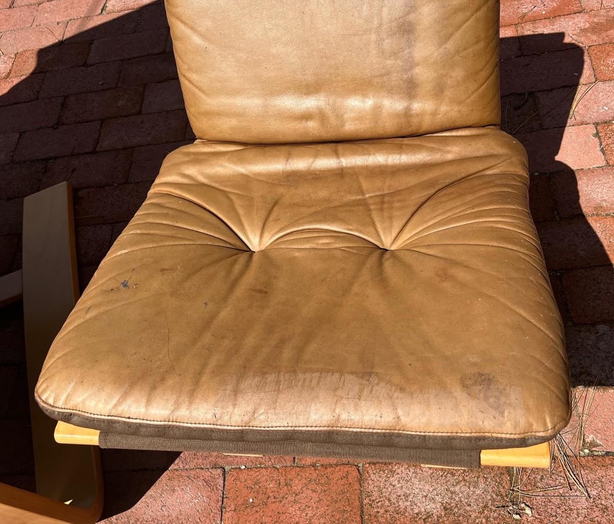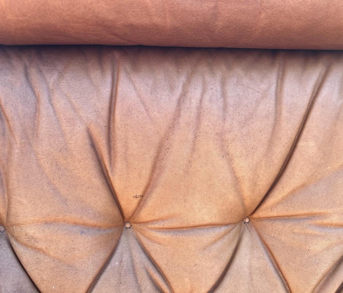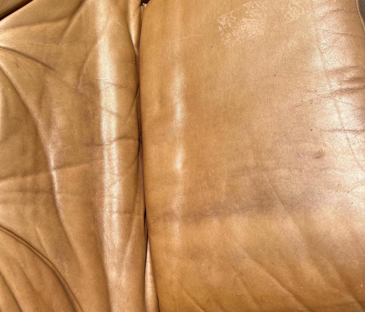The headrest has an area that may have had a strip of adhesive applied (there are no holes or rips). MAY buff out with professional cleaning. (Not guaranteed. Sold AS IS.)