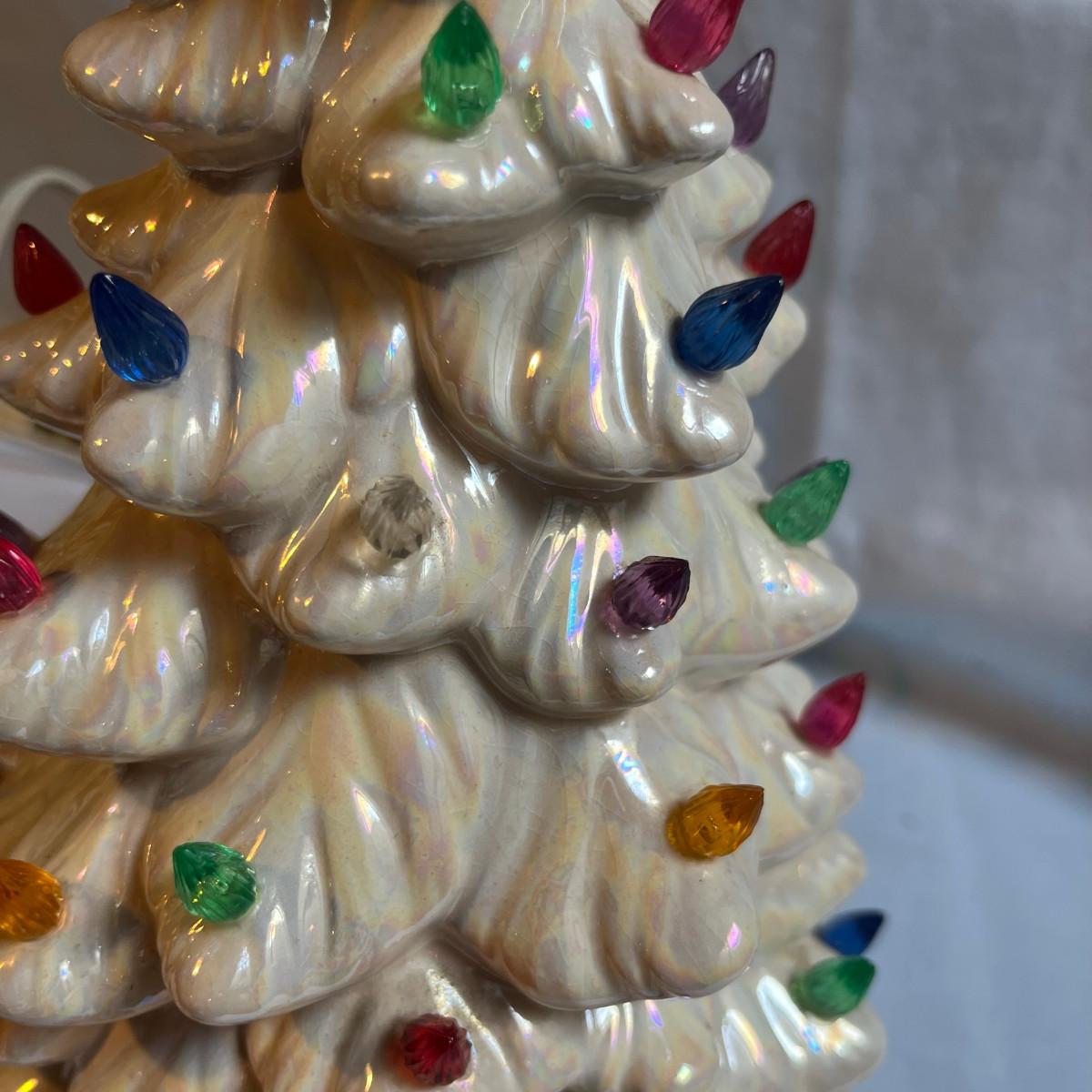 There are several of the colored lights missing on both trees. No chips, cracks, or damage otherwise!