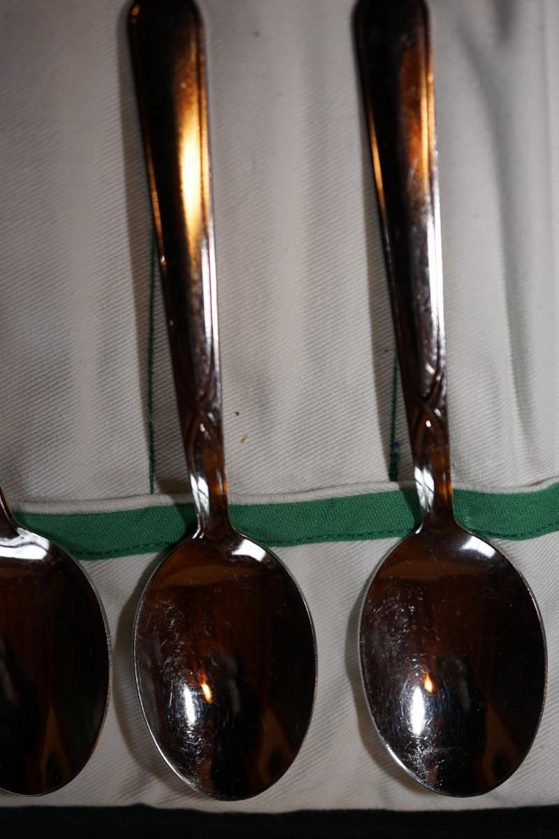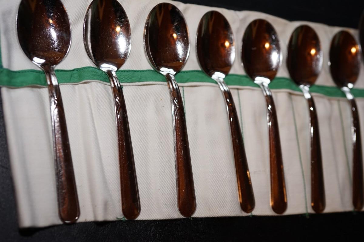 set of eight teaspoons. a lightweight stainless. from the 60's. a coffee spoon.