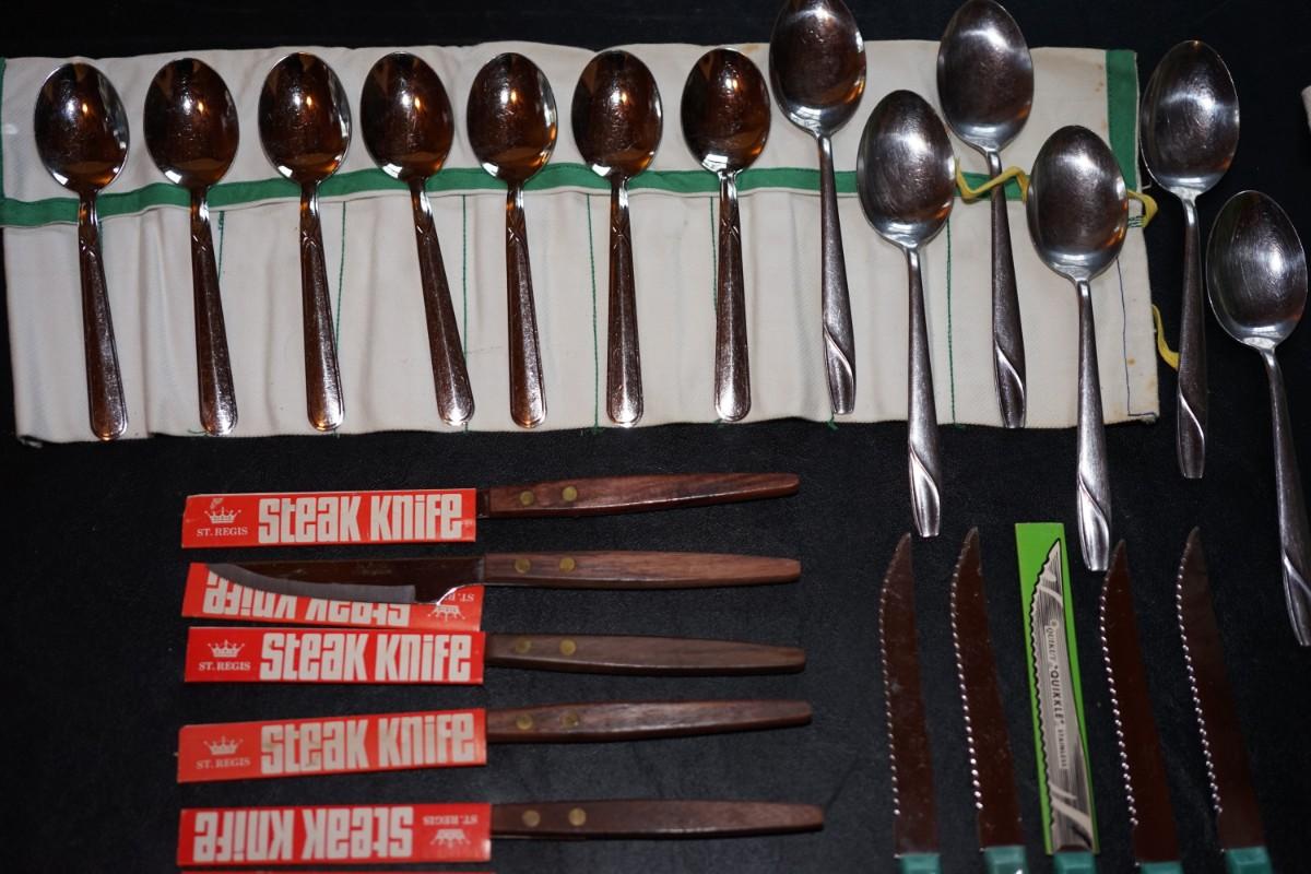 MCM 60'S KITCHEN SPOONS, STEAK KNIVES AND QUICKKLE EDGE KNIVES