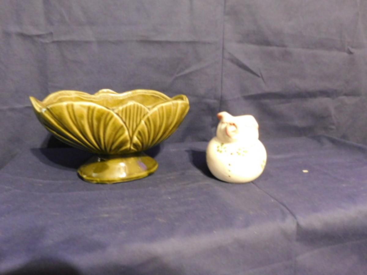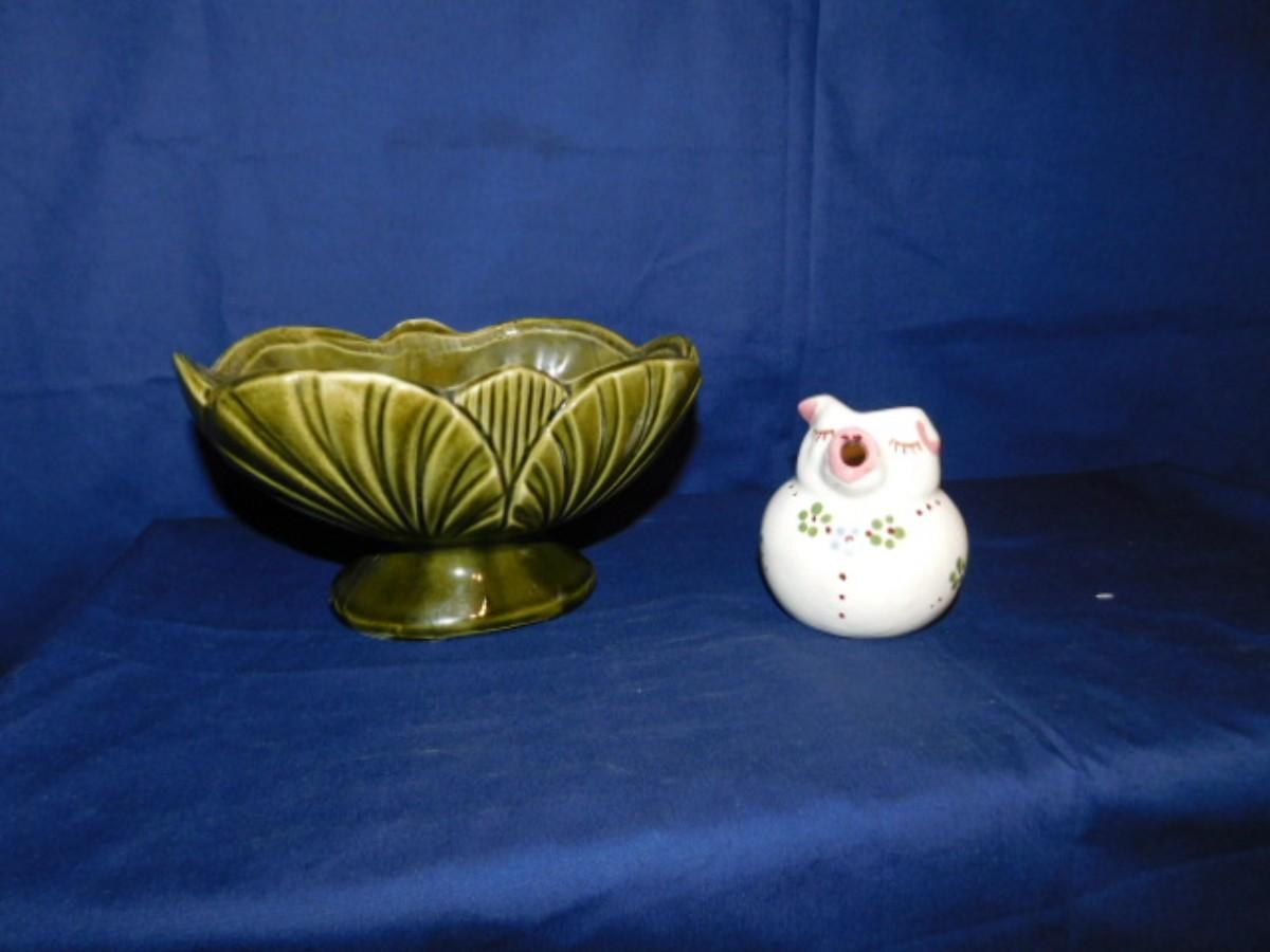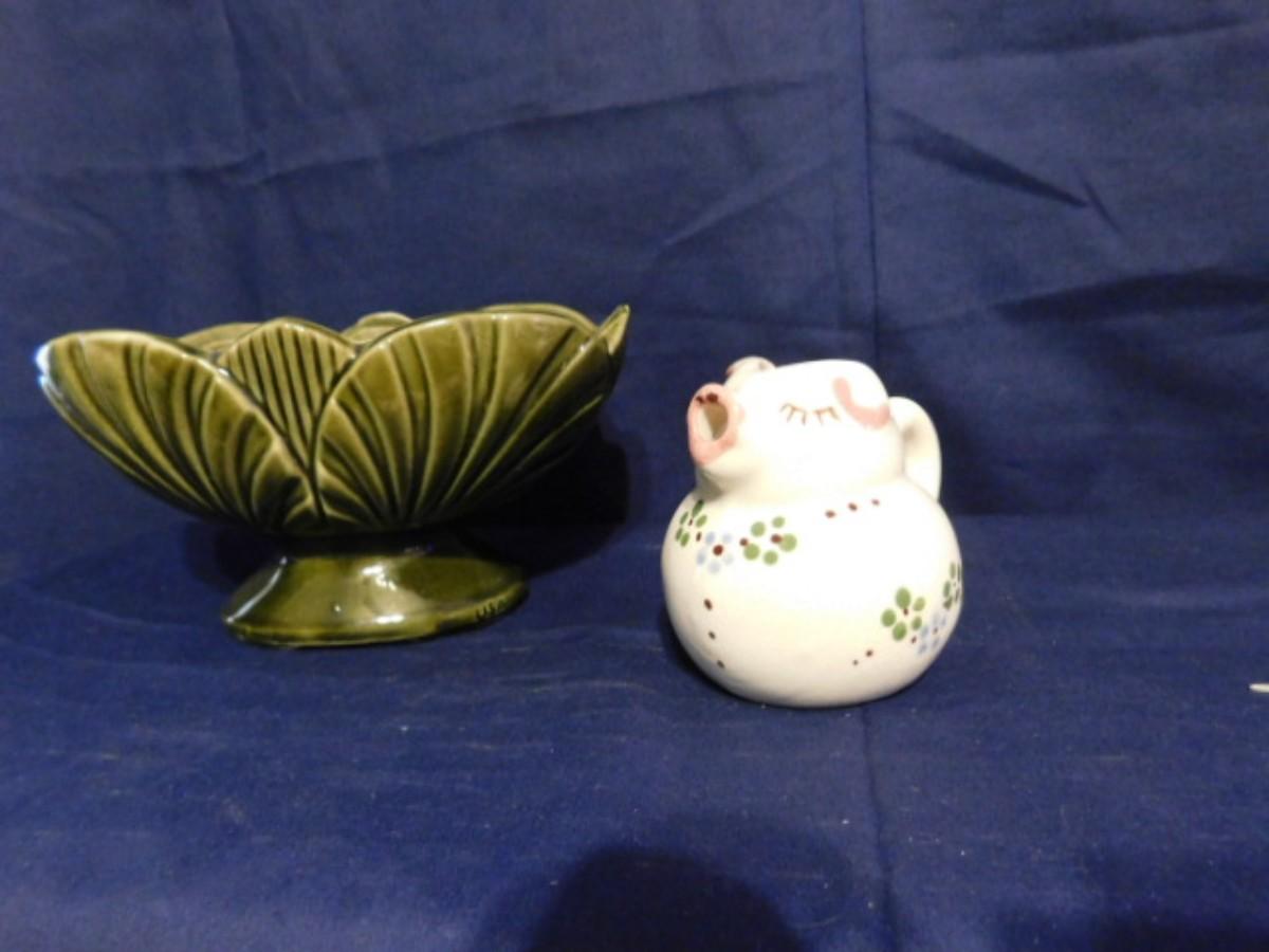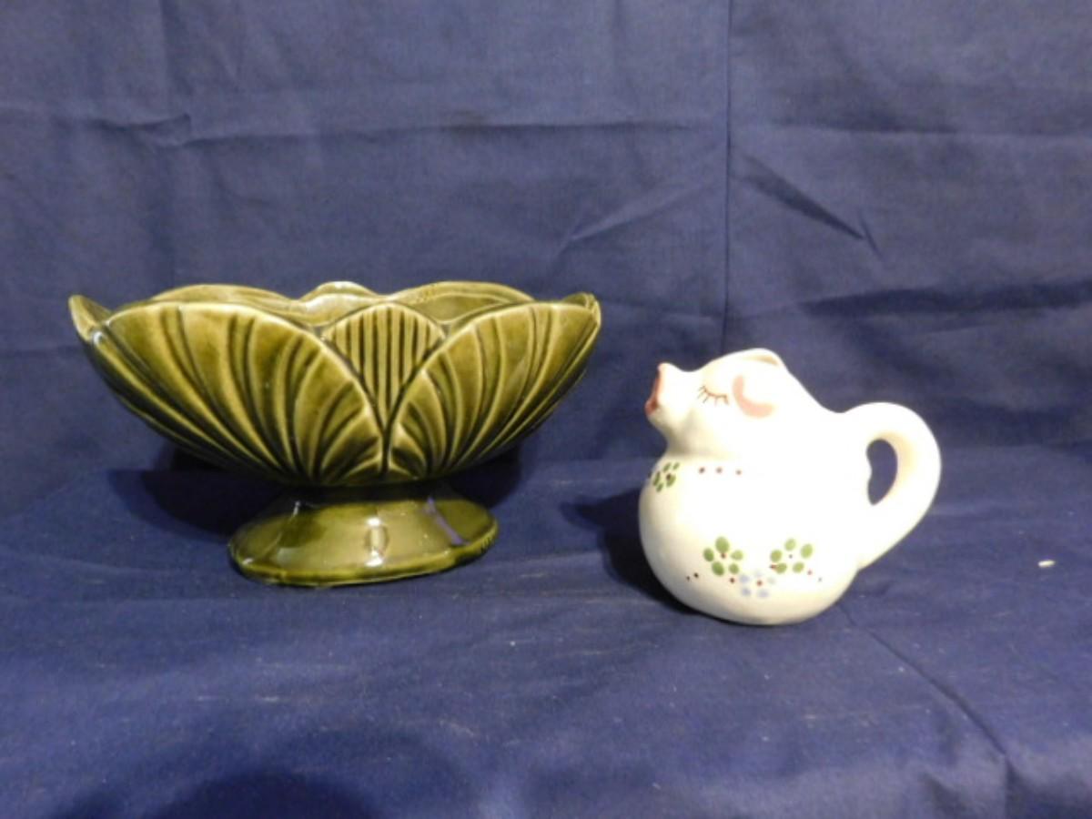 MCM AMERICAN BISQUE POTTERY PLANTER AND PURITAN POTTERY PIG CREAMER JAR