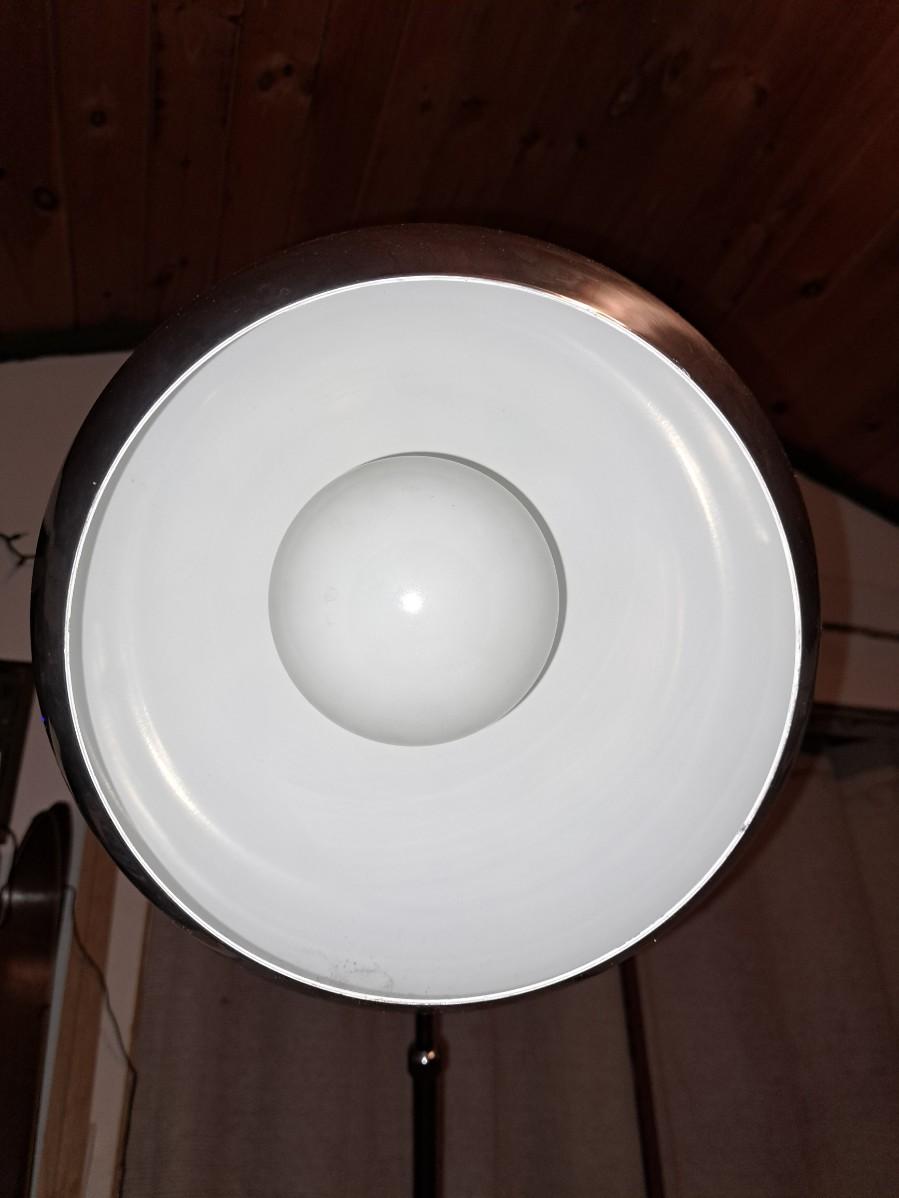 MCM Arc Chrome Eyeball Floor Lamp. This amazing beauty extends to 10'+ with a heavy weighted base for balance. A foot pedal switch makes turning on and off easy. The chrome shade has no dents or dings and the interior white is intact and good condition. This is a local pick up.