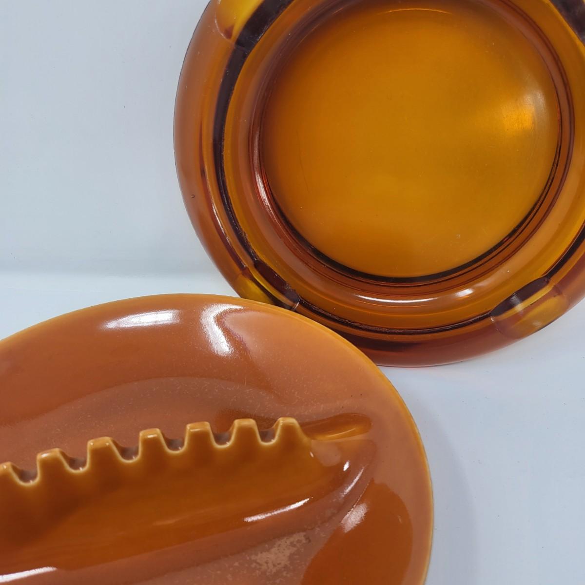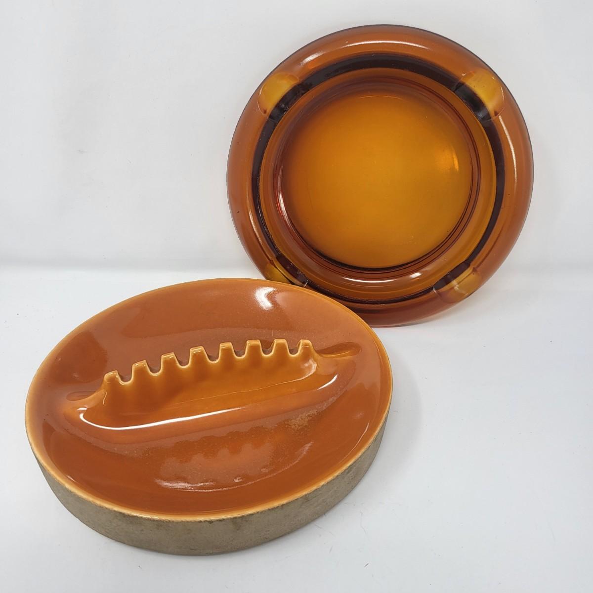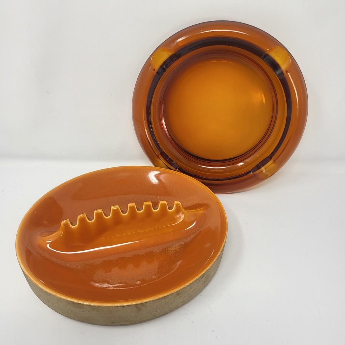 MCM Ashtrays Amber Glass, Hyalyn Ceramic