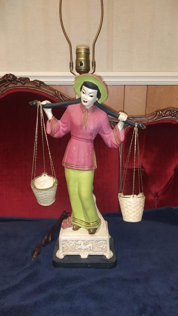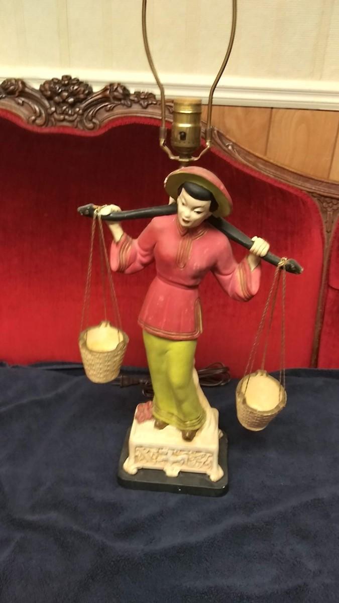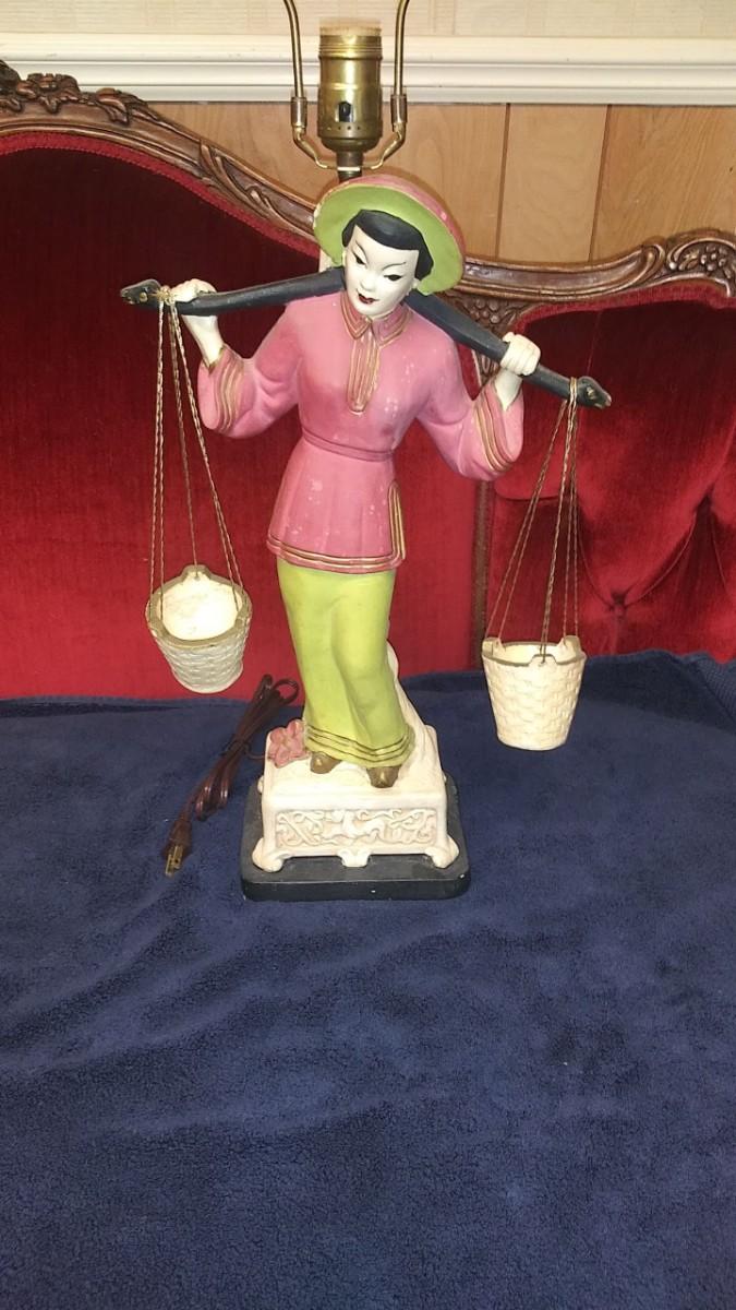 Beautiful lamp with hanging baskets, great condition with vintage shade. Large sofa lamp, very unusual size.