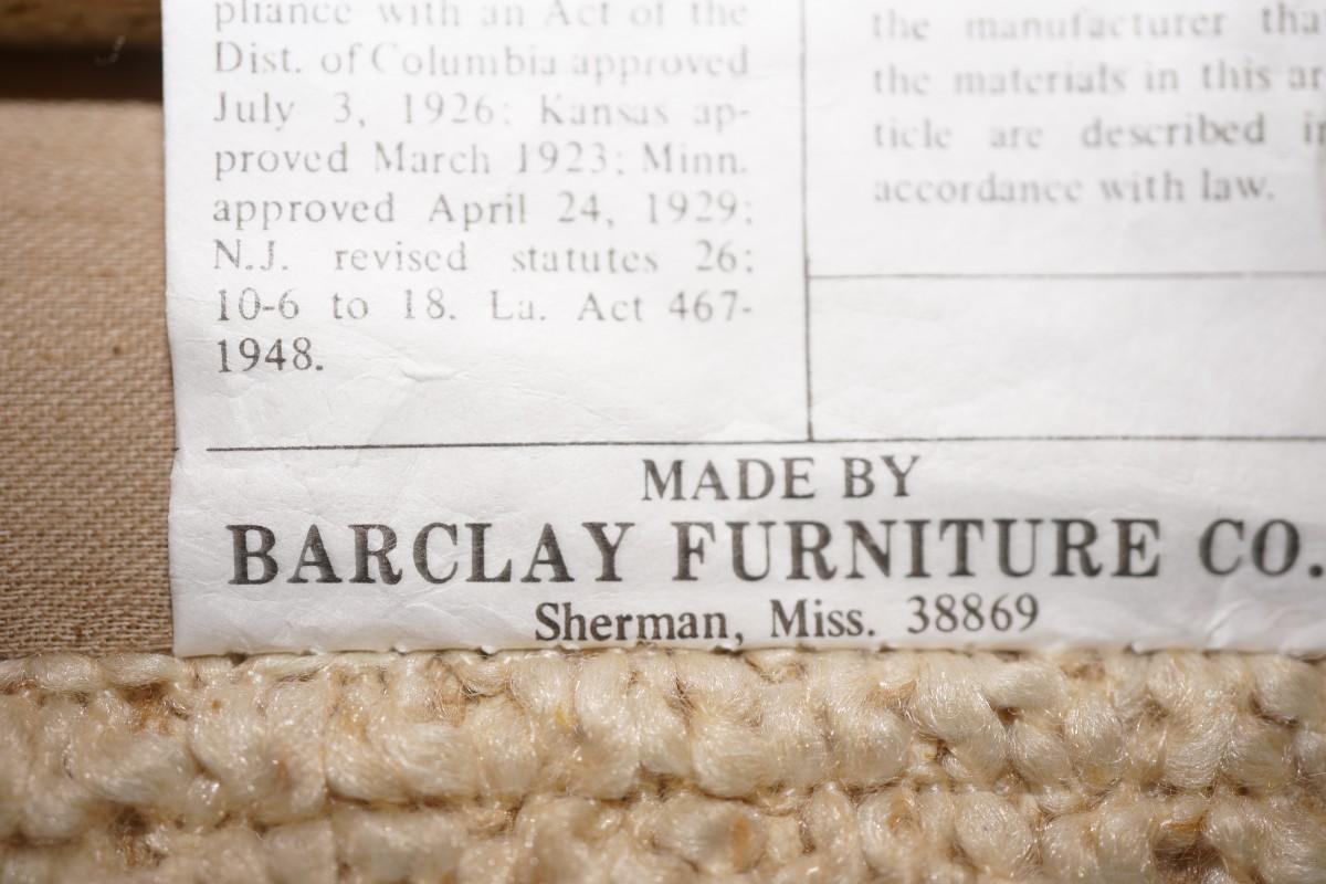 it is now a platform sofa. may have had legs but they were removed. it is slightly soiled. the one arm of the sofa has staining of a rust color. overall not bad and has a nice look. Would be great for the den or sunroom.