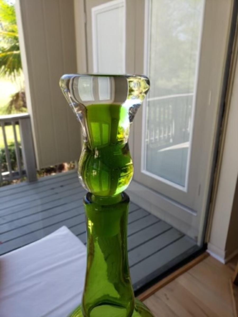 MCM Blenko lime green decanter