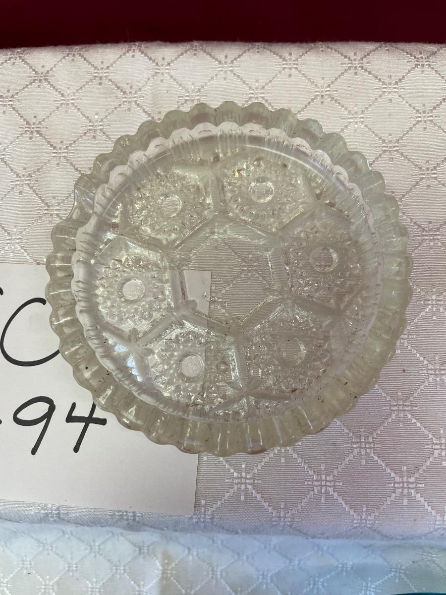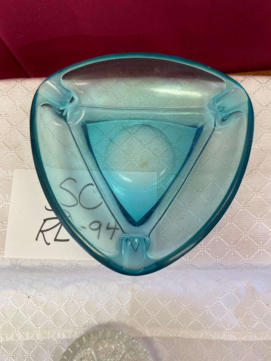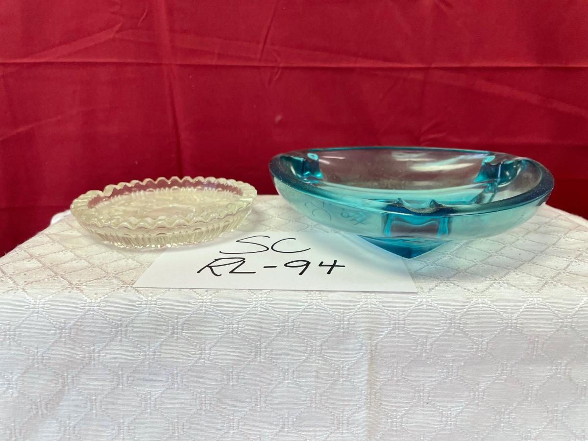 MCM blue glass ashtray & pressed glass Hobstar ashtray