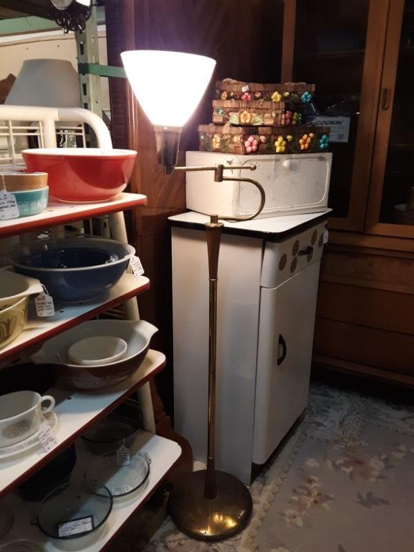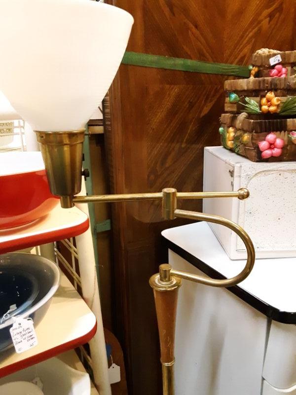 Mid Century Brass floor lamp swivel light with milk glass shade