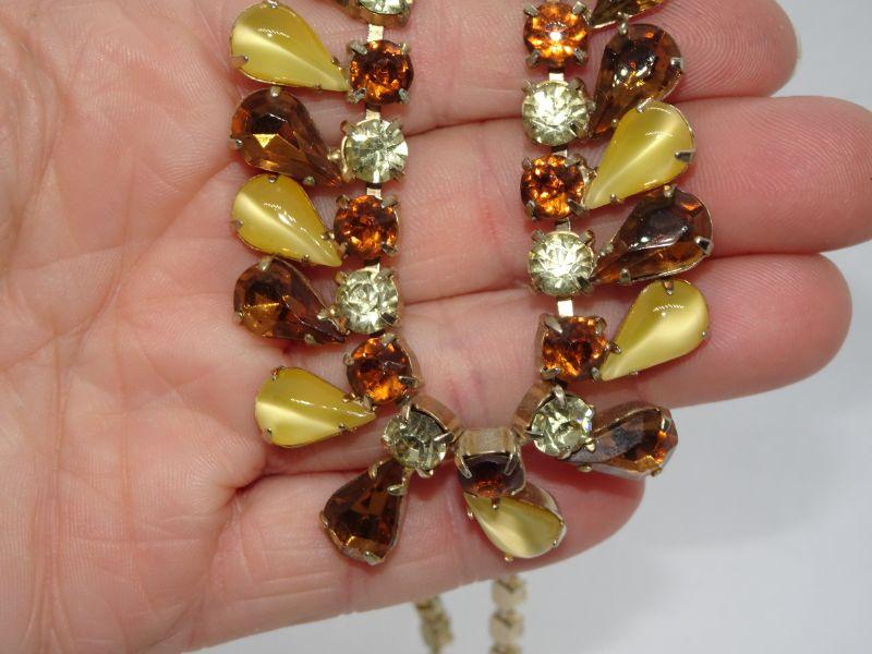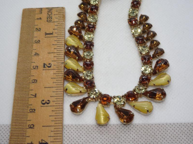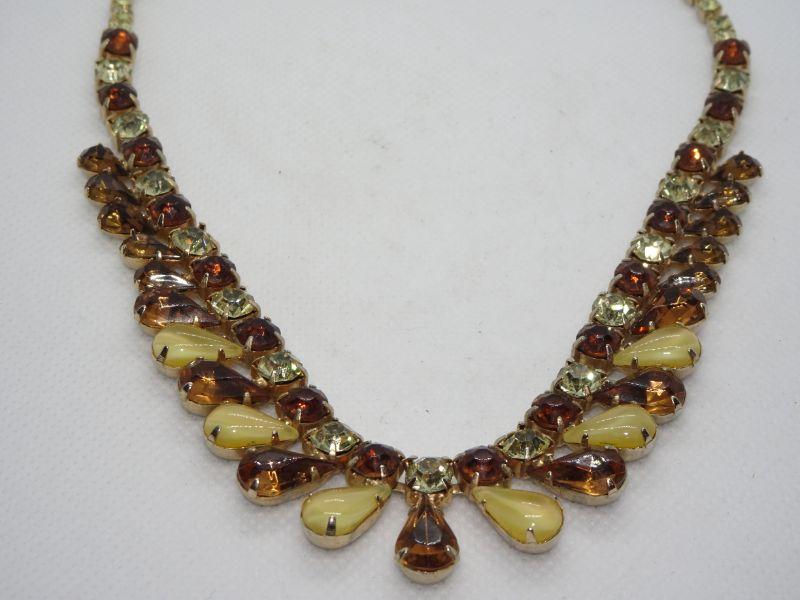MCM Browns & Yellows Rhinestone Pendant Necklace, Wonderful Fall Colors