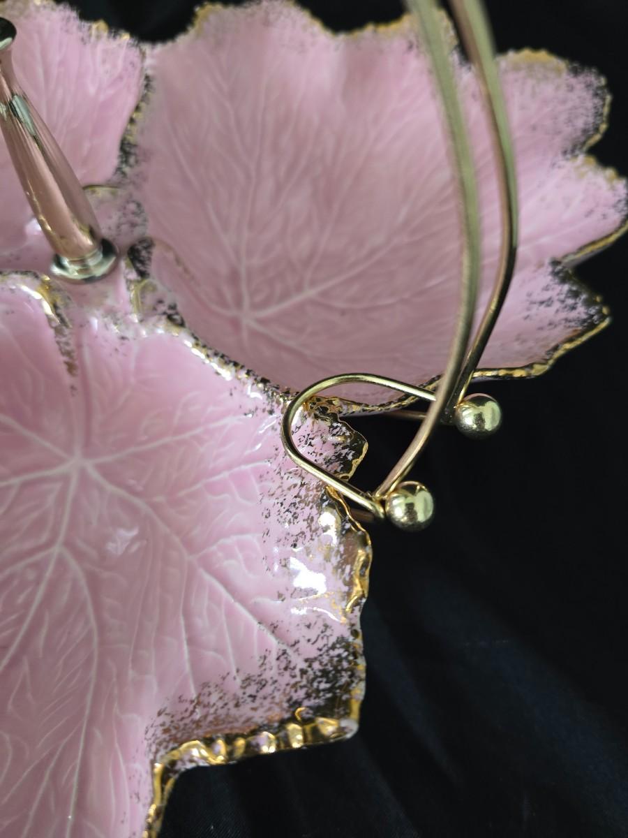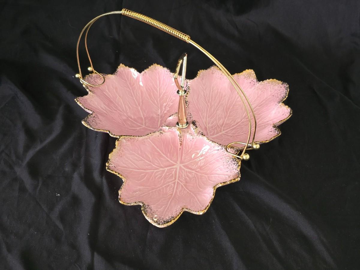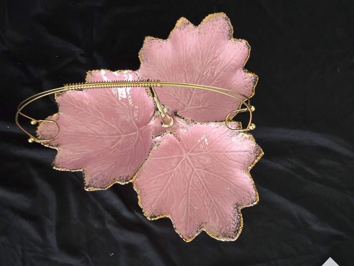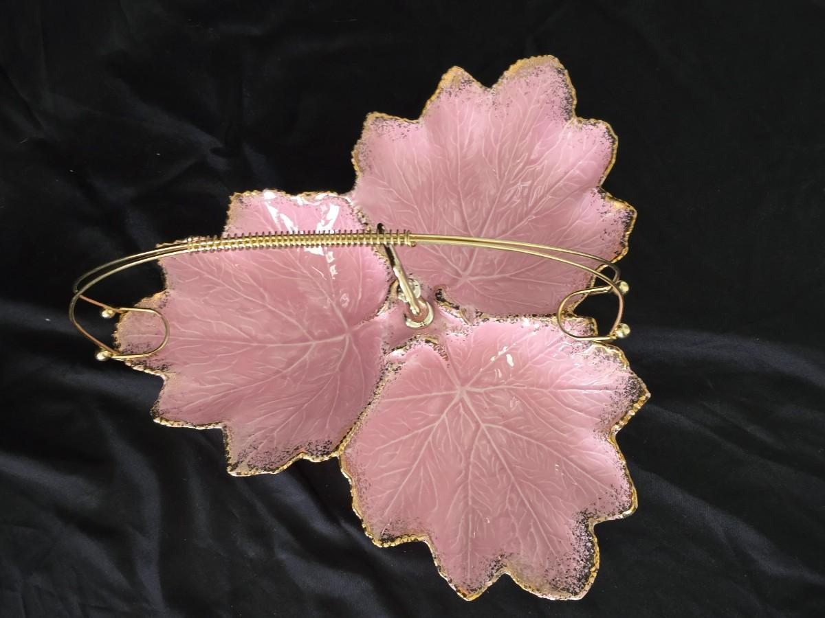 MCM California Original Mid-Century Modern pink leaf-shaped serving dish