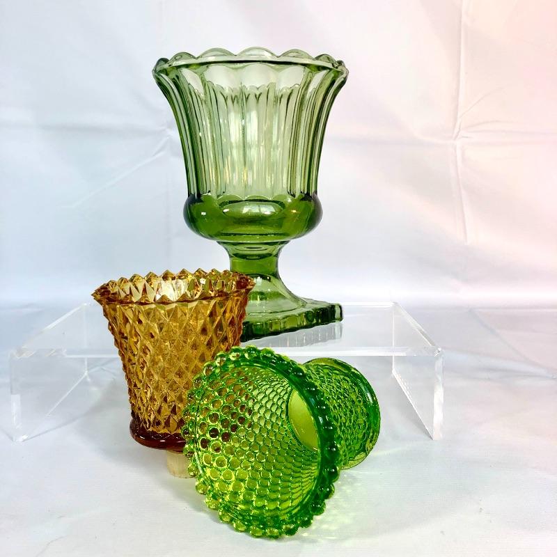 Smaller are intended to fit in the top of candlesticks to allow use with votive candle.