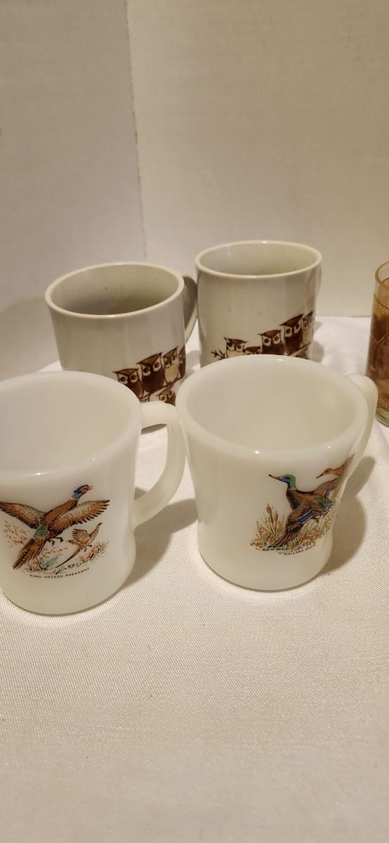 Fireking Ovenware Milkglass Mallard Duck And Ruffed Grouse Coffee Cup