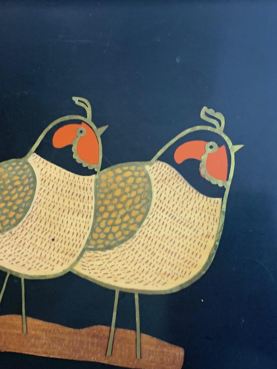 MCM Couroc Serving Tray Partridge Birds