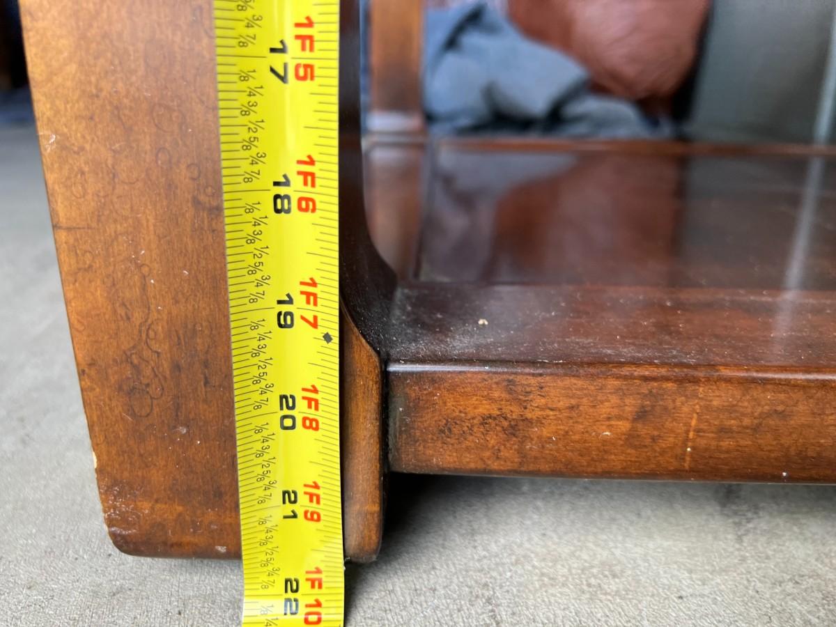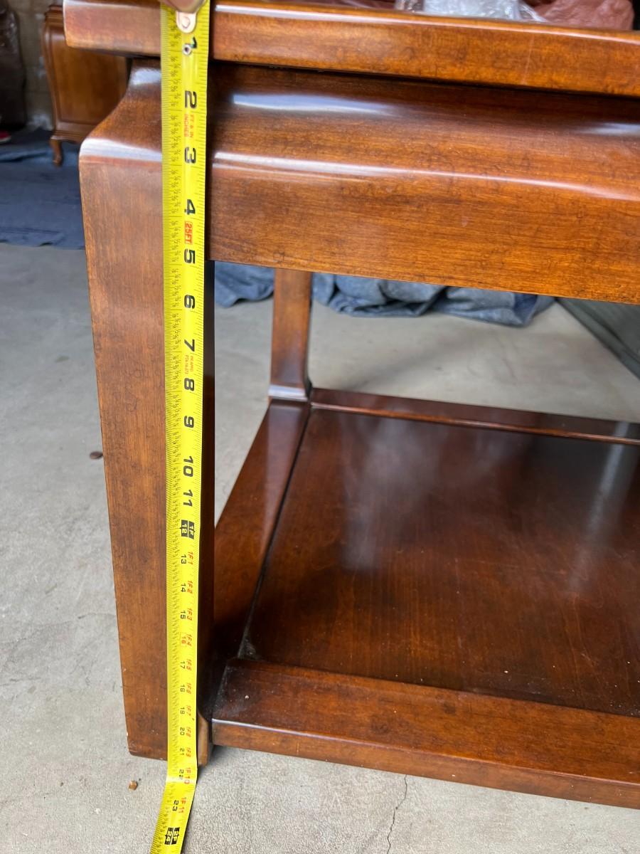 There is no significant damage to the piece of furniture and is in overall good useable and displayable condition. Check pictures for more details and for sizing.