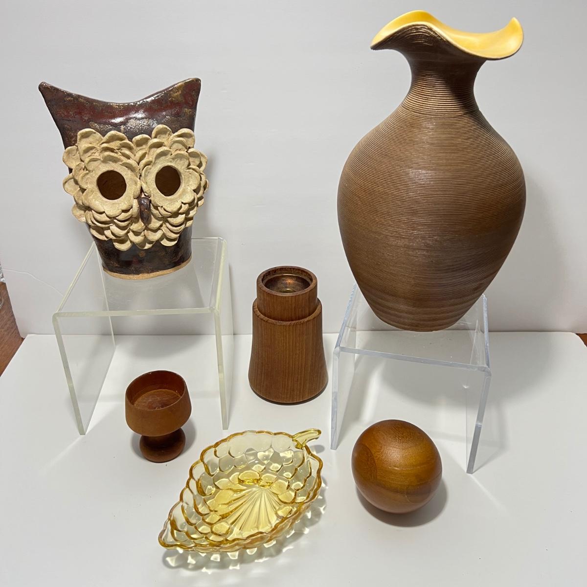 MCM Decorative Teak Ceramic Glass Lot - Red Wing Vase, Dansk