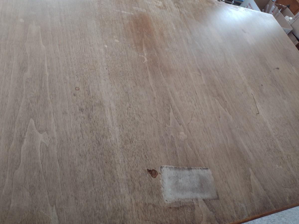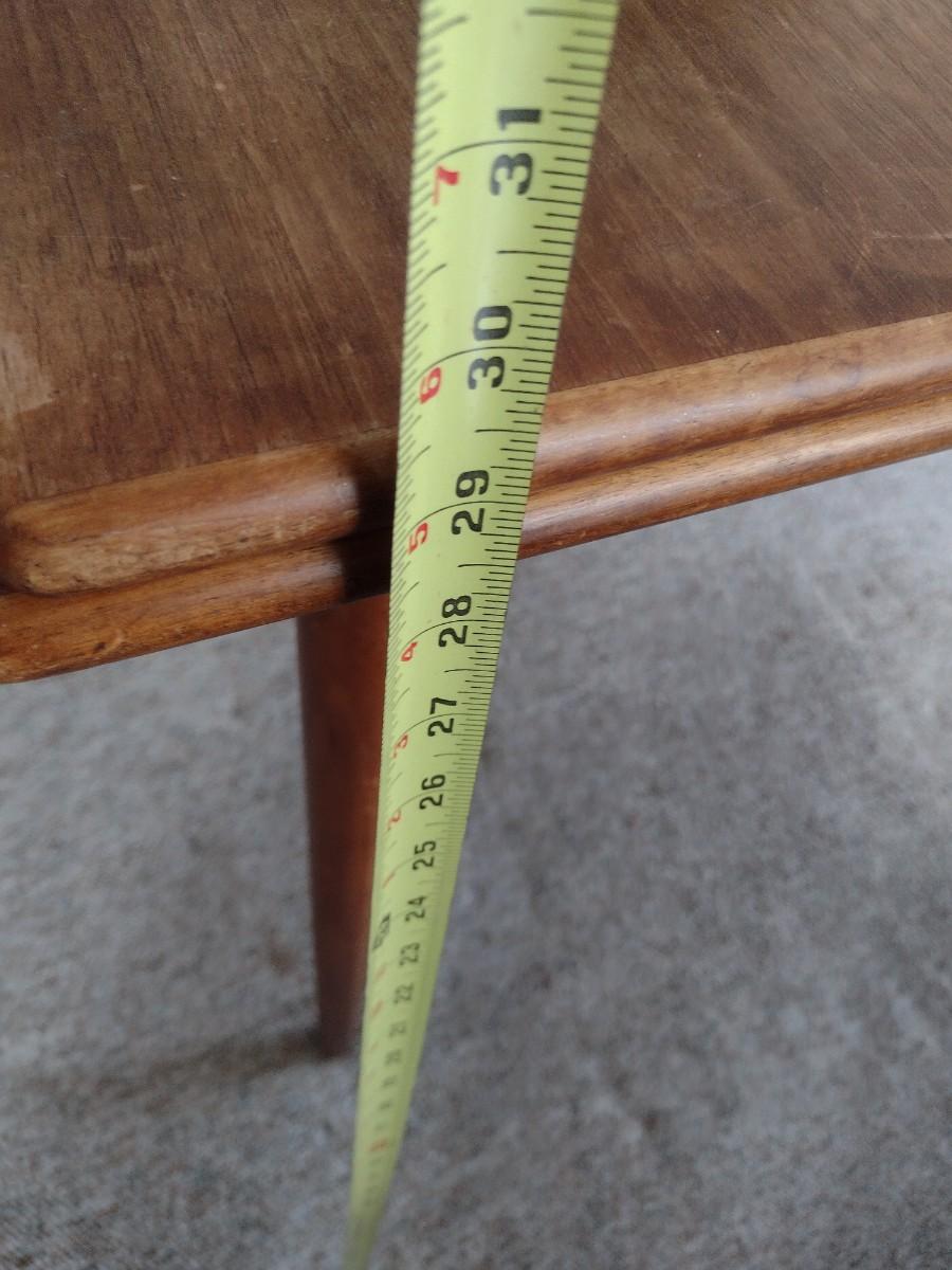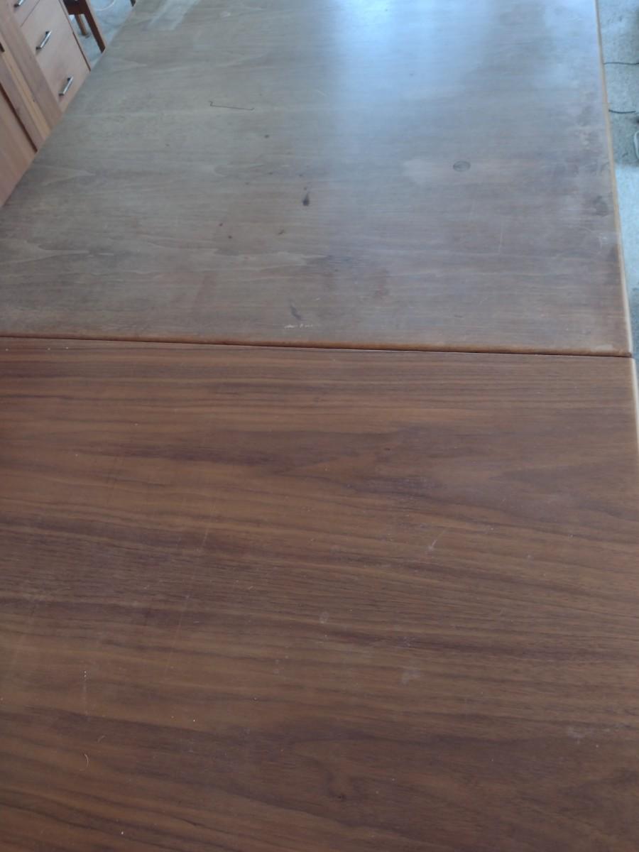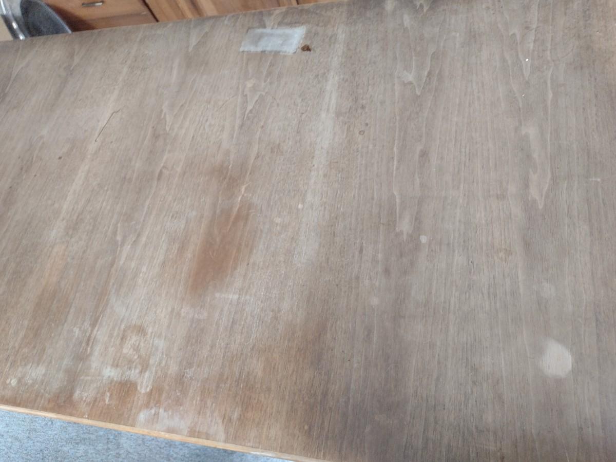 MCM Design Table with Leaf Extensions . Was used as a crafting work table. Has some stains and marks on the surface finish.