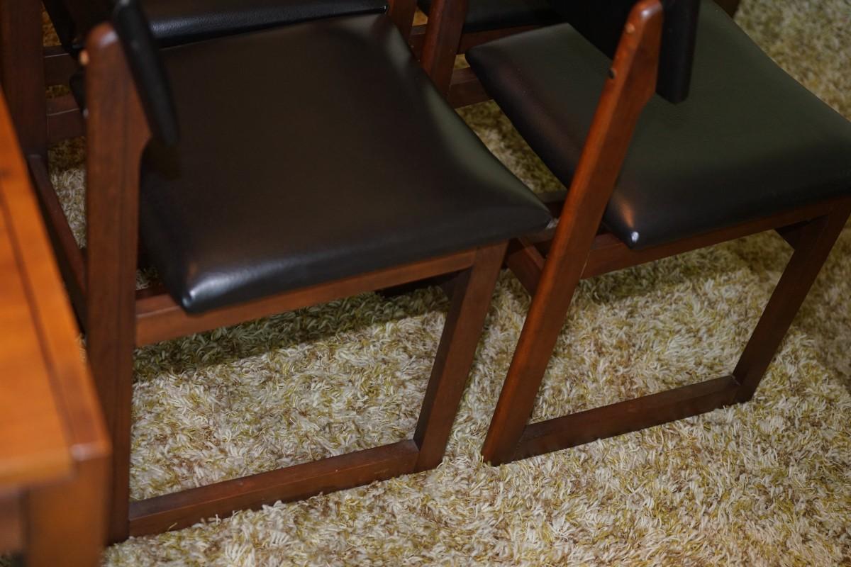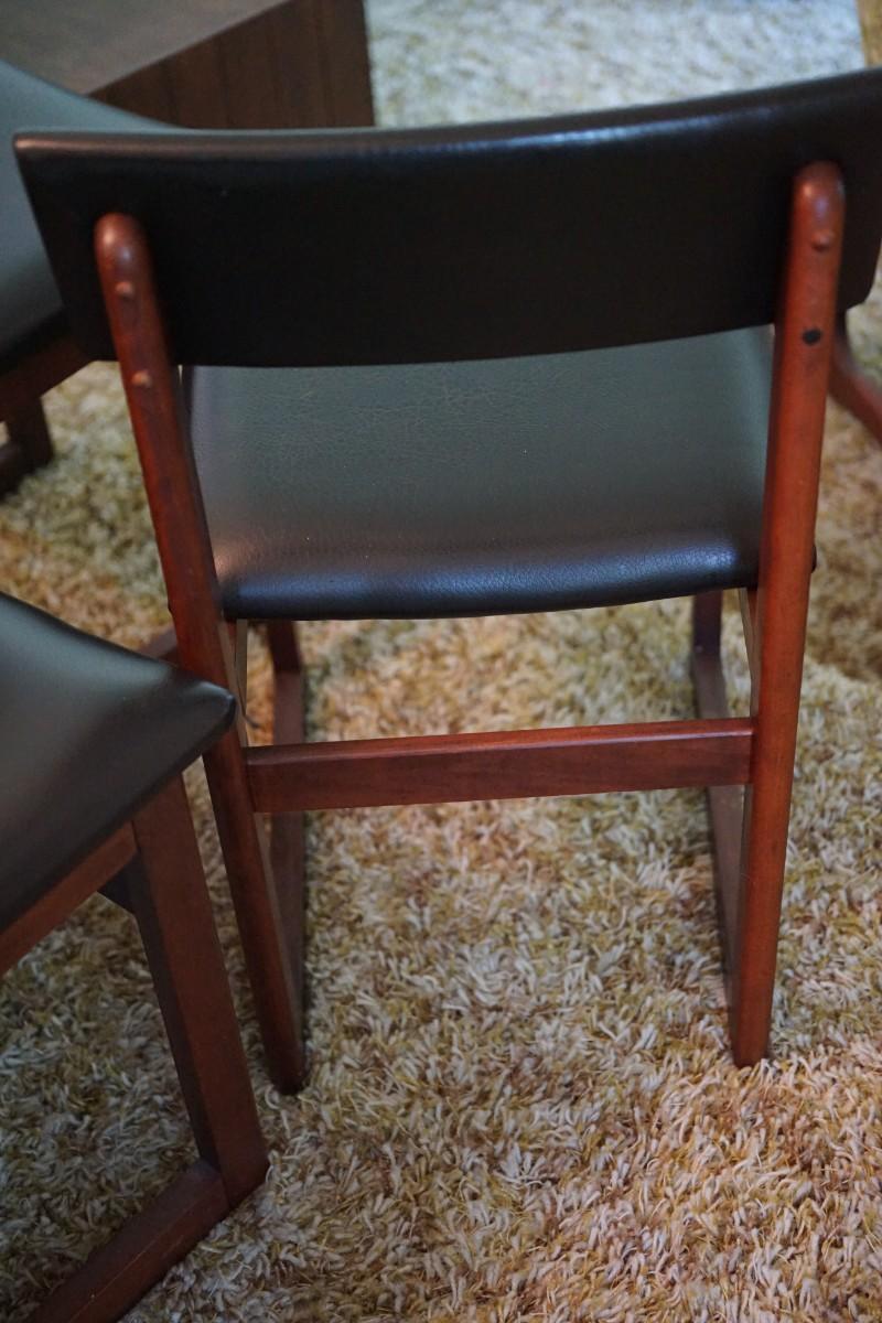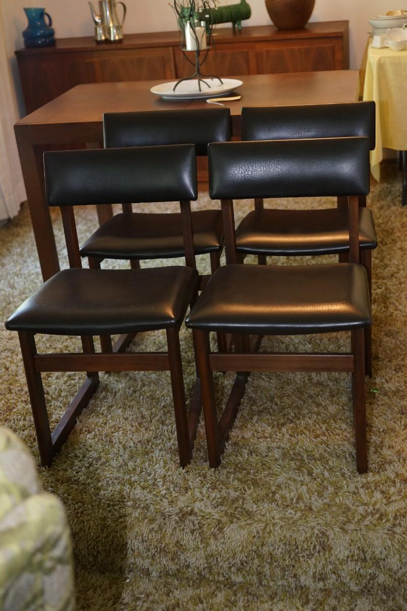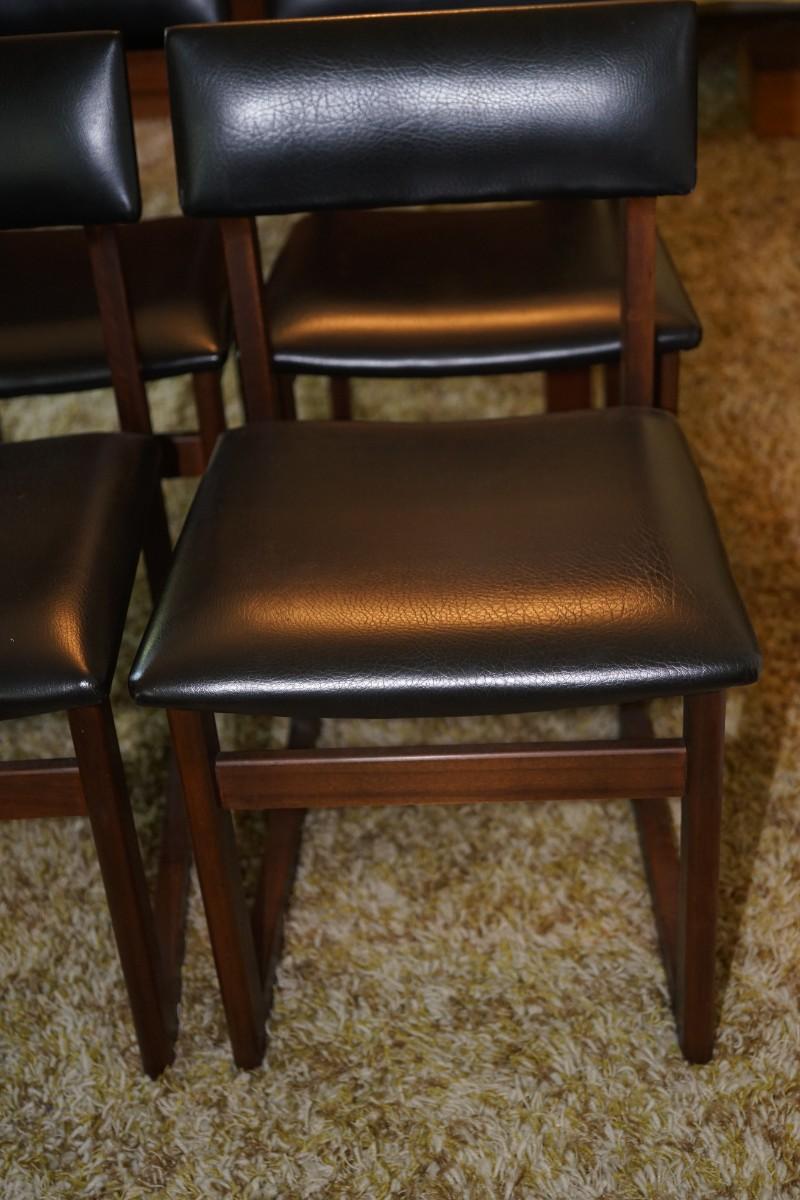 MCM DINING CHAIRS OF WALNUT WITH BLACK VINYL SEATS & BACKS
