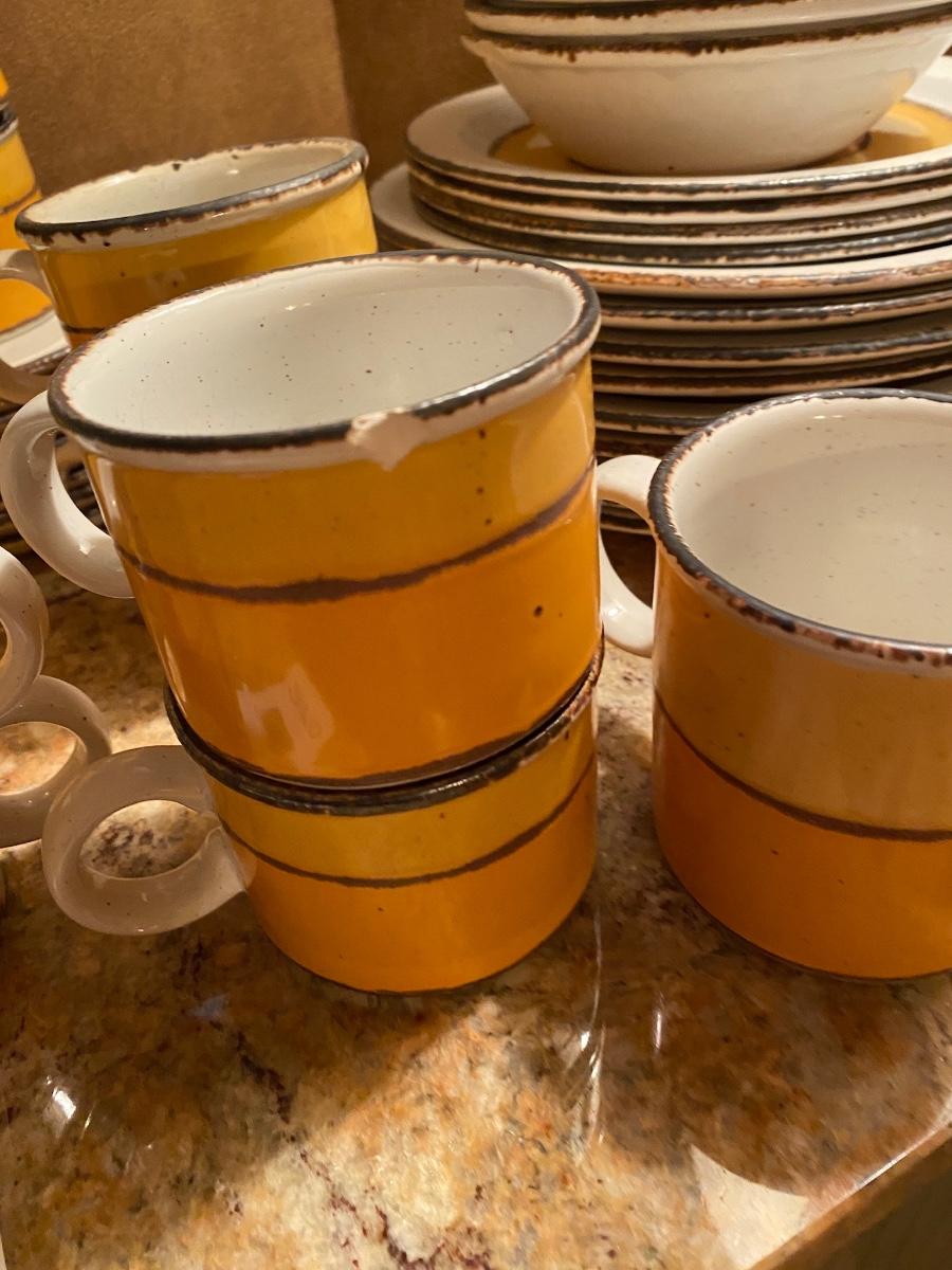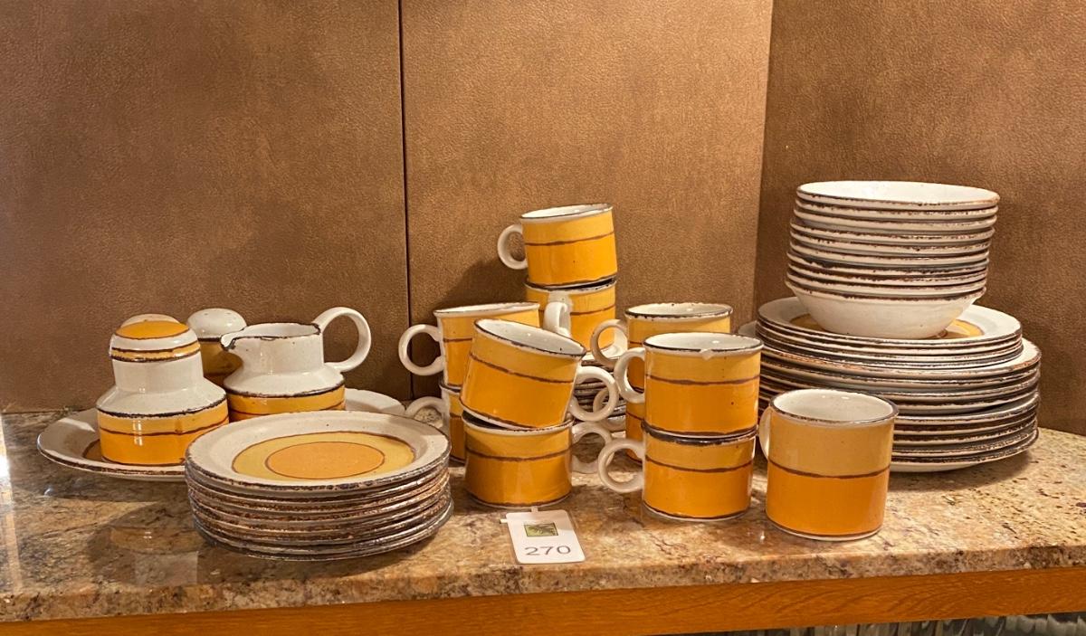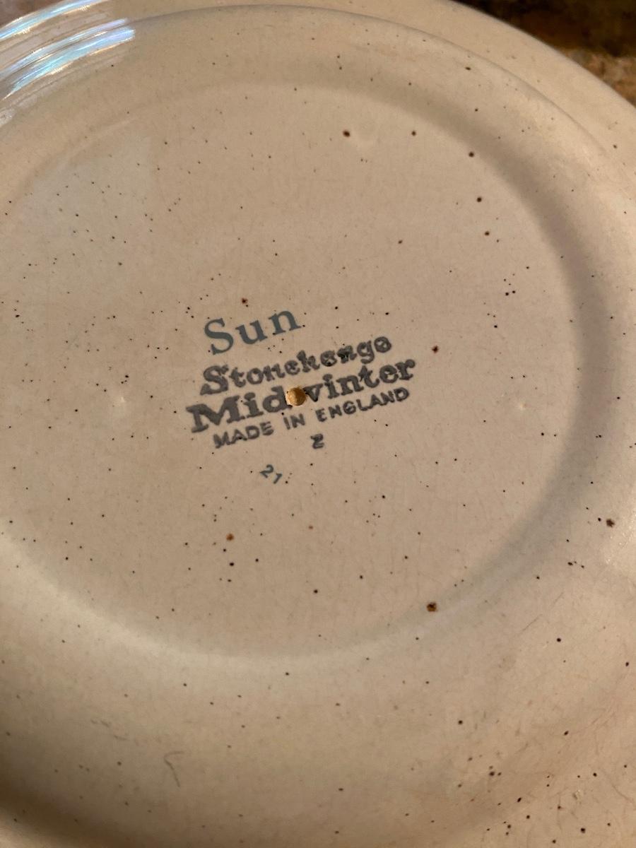 Stonehenge Sun Midwinter dinnerware ( 55 pcs ) (1) platter, sugar, creamer, s&p, (11) cups, (9) 10" plates, (4) 8" plates, (10) bowls, (10) saucers, (8) 6" plates one chipped plate