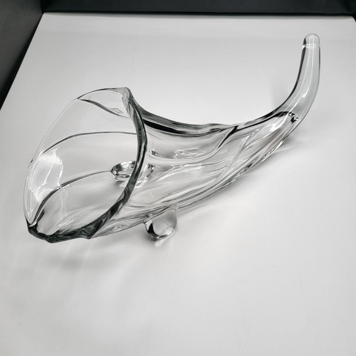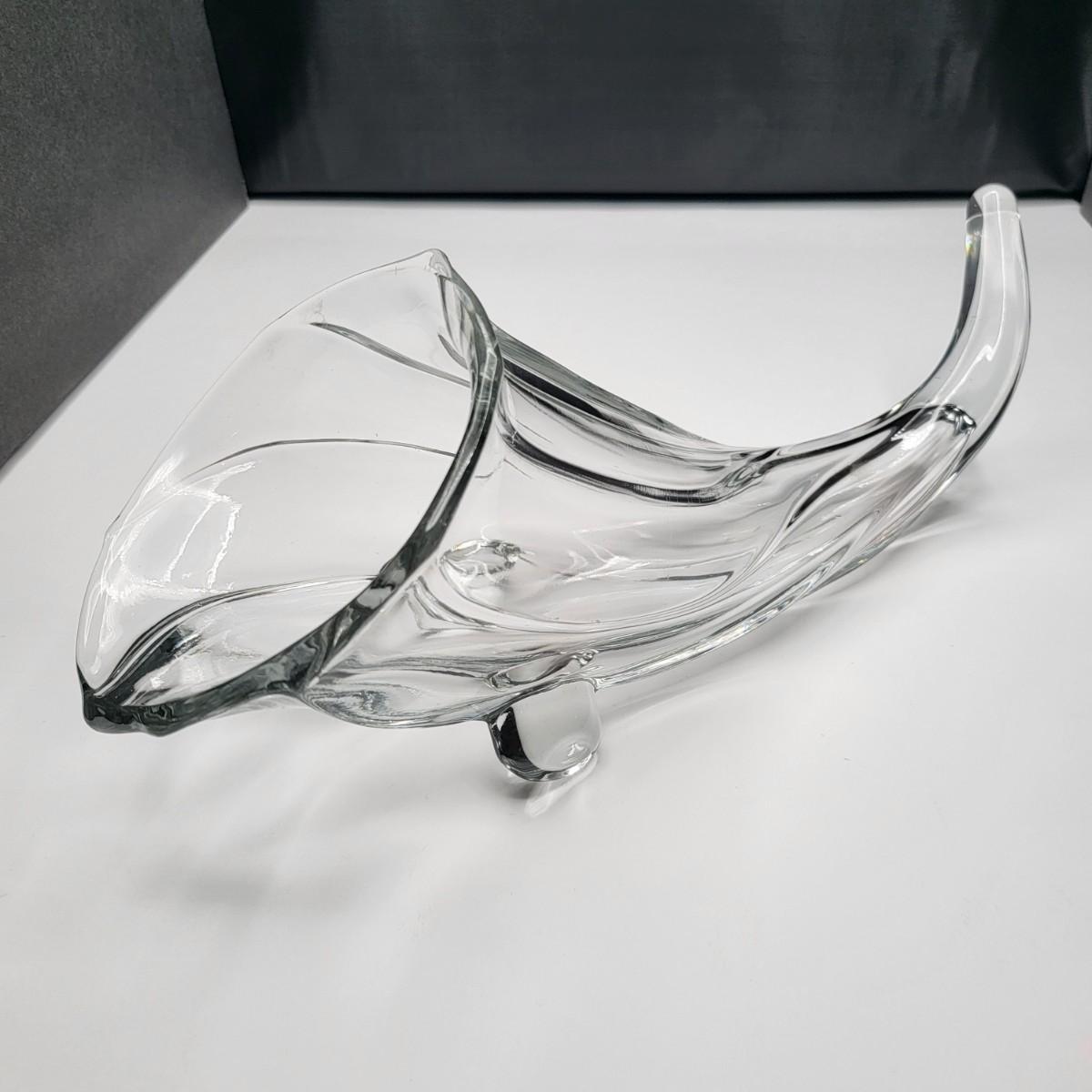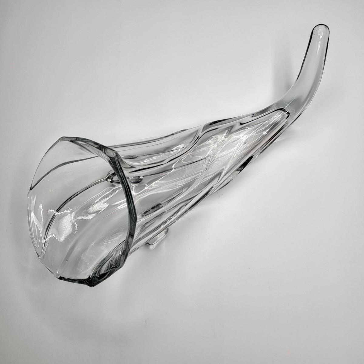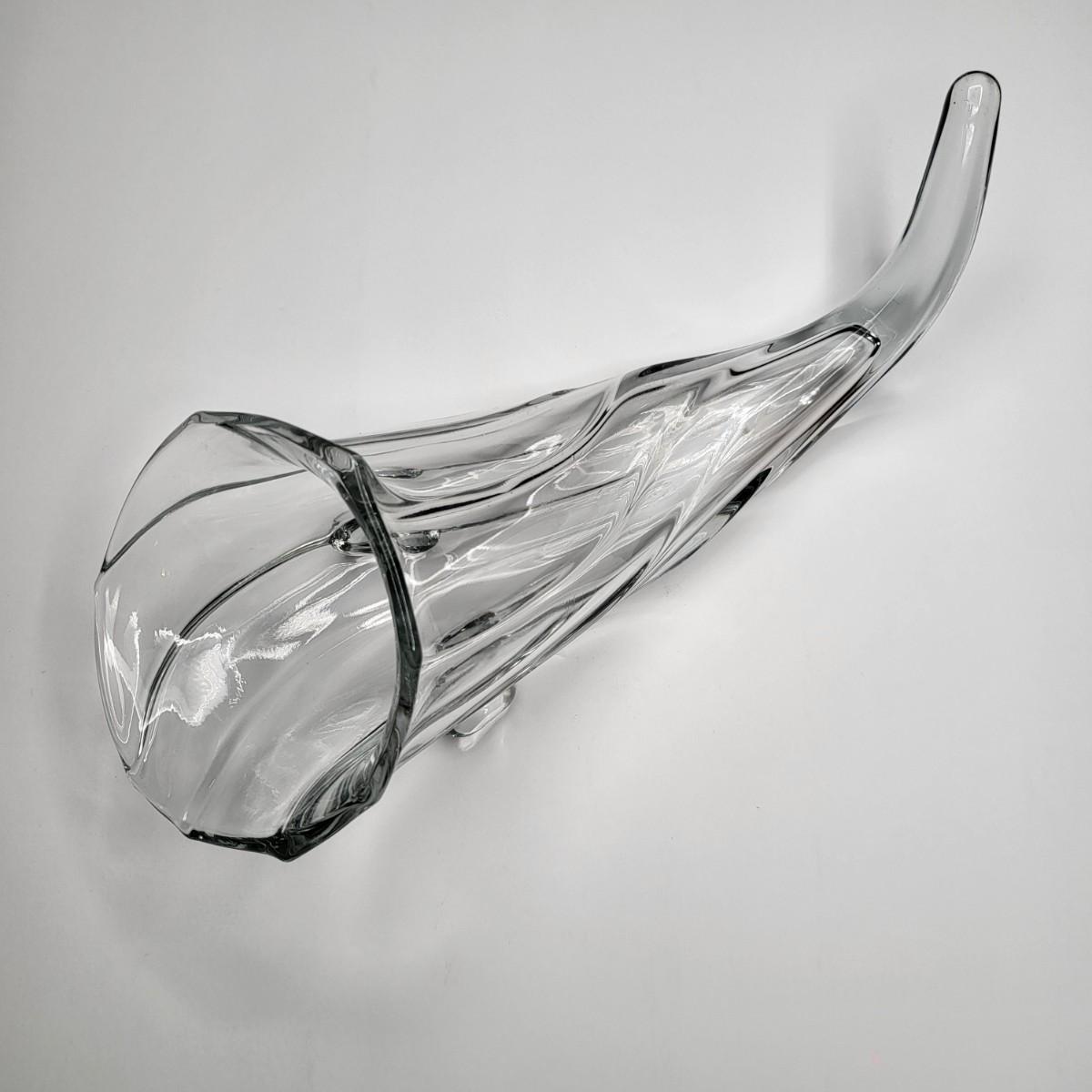 1950's clear glass cornucopia vase horn of plenty. Unsigned Duncan Miller. 13" L x 5" W. Perfect centerpiece to fill with Fall, Halloween or Thanksgiving decor.