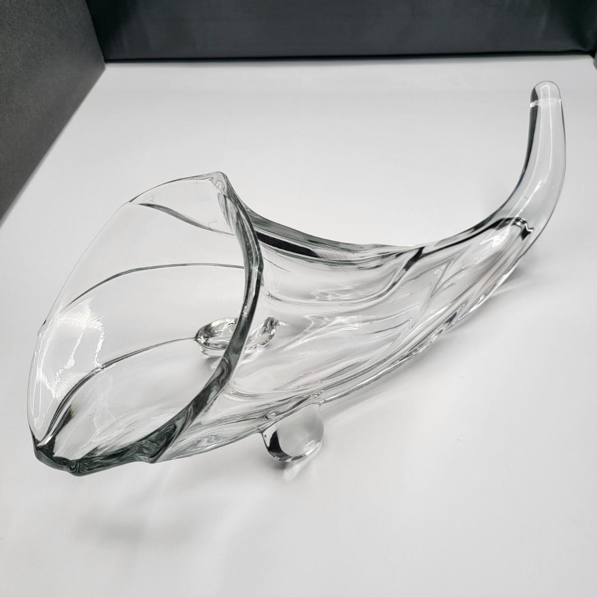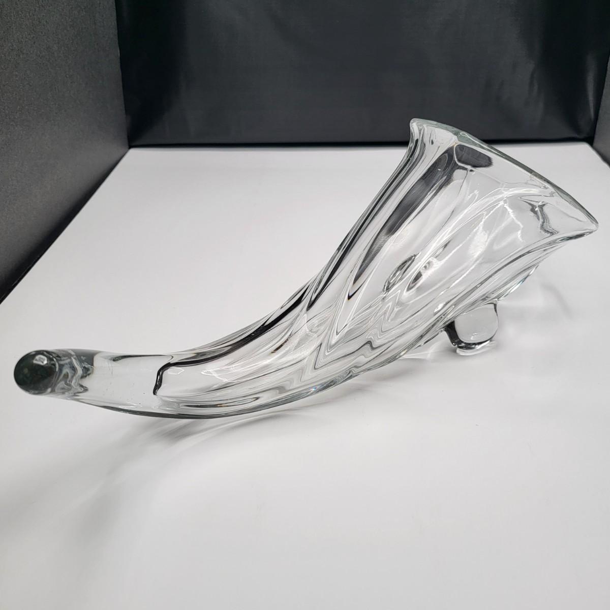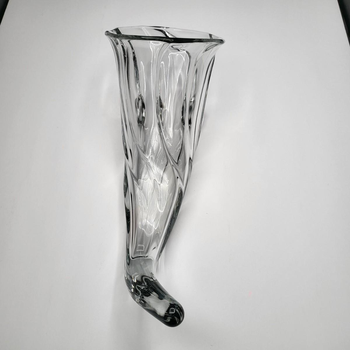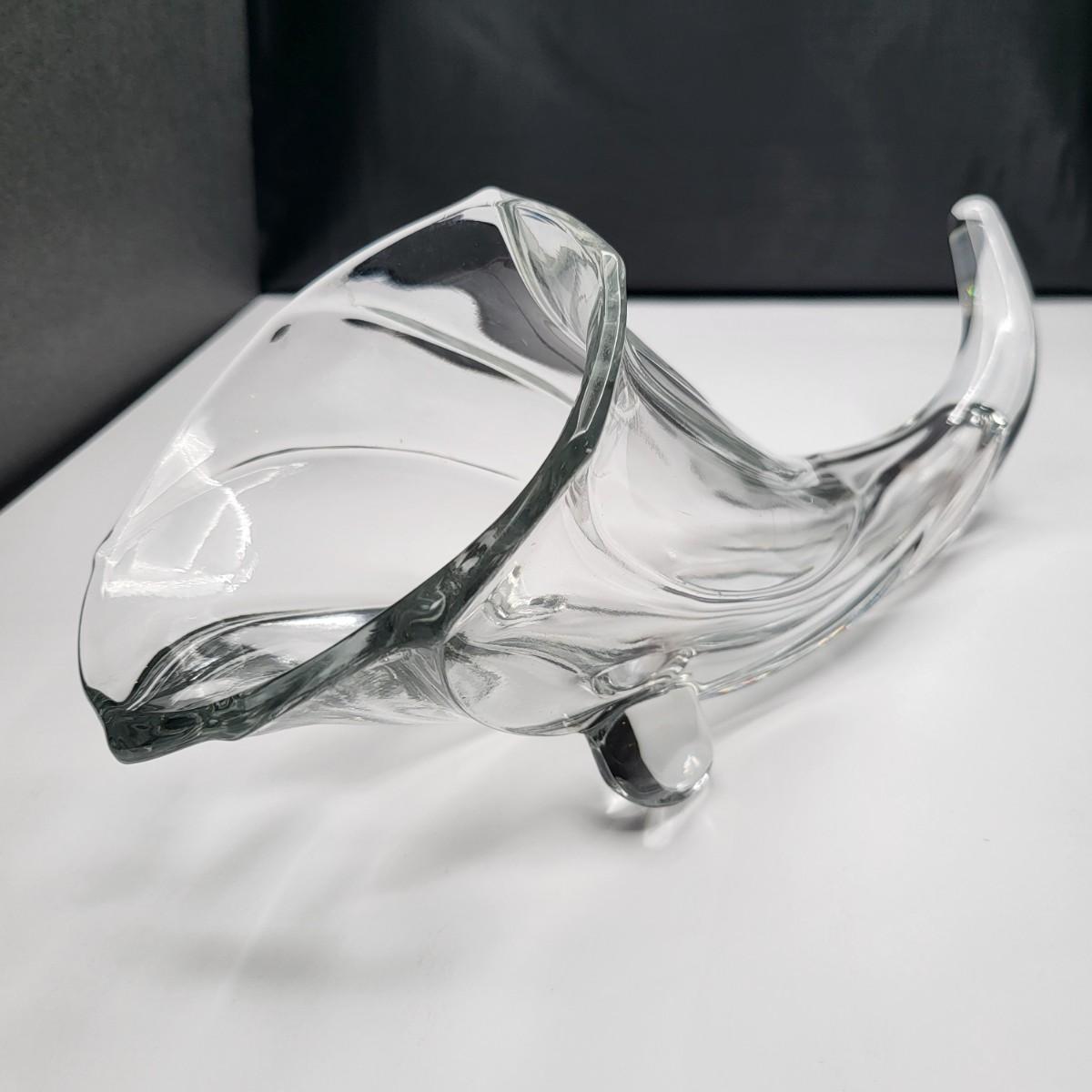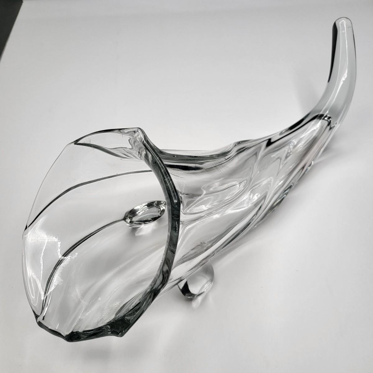 1950's clear glass cornucopia vase horn of plenty. Unsigned Duncan Miller. 13" L x 5" W. Perfect centerpiece to fill with Fall, Halloween or Thanksgiving decor.