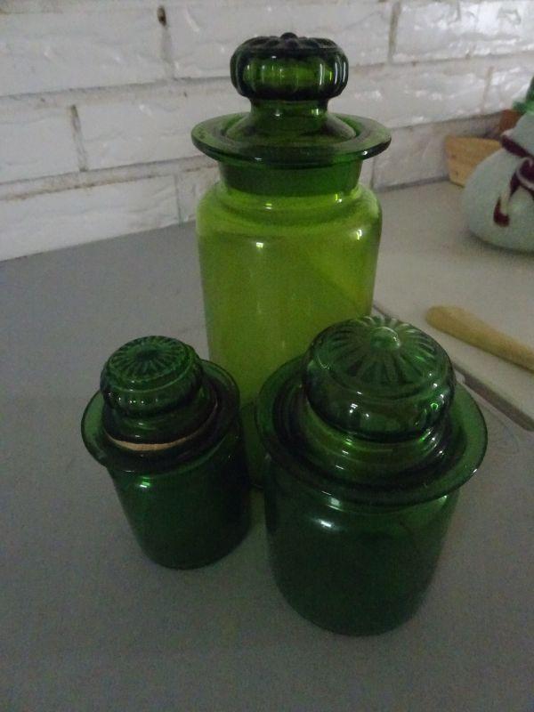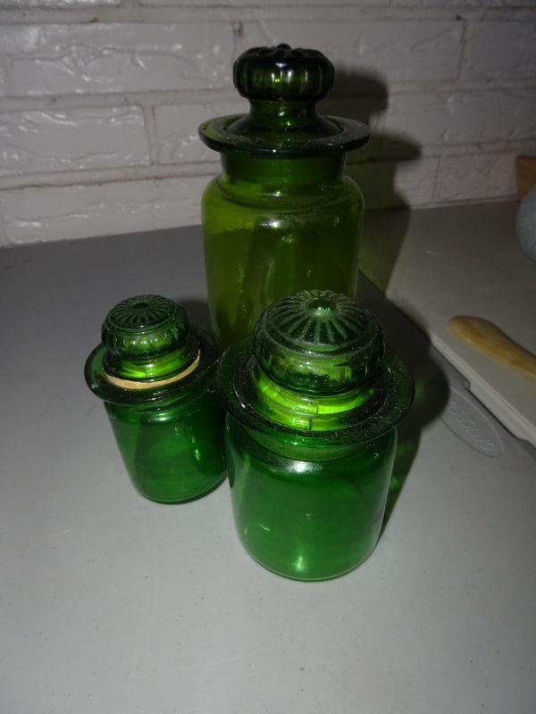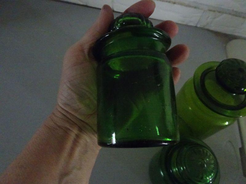 MCM Emerald Green Decanters, Apothecary Jars (3)
