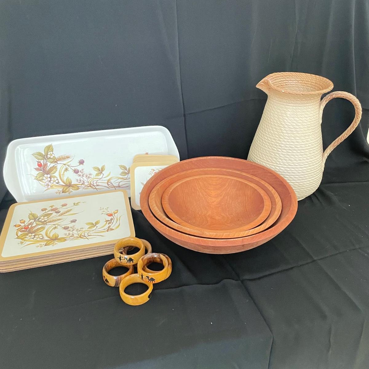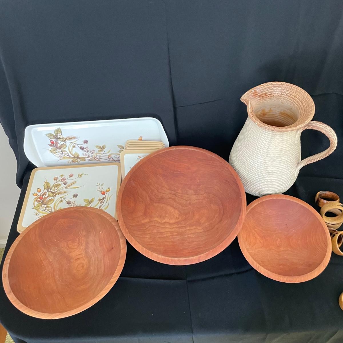MCM Entertaining w/ Wood Bowls & English Stoneware Pitcher (LR - SS)