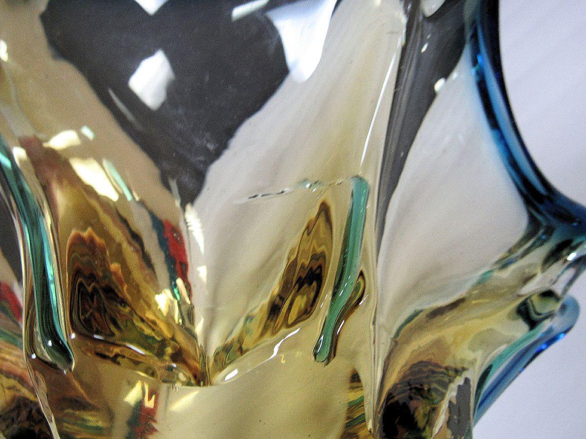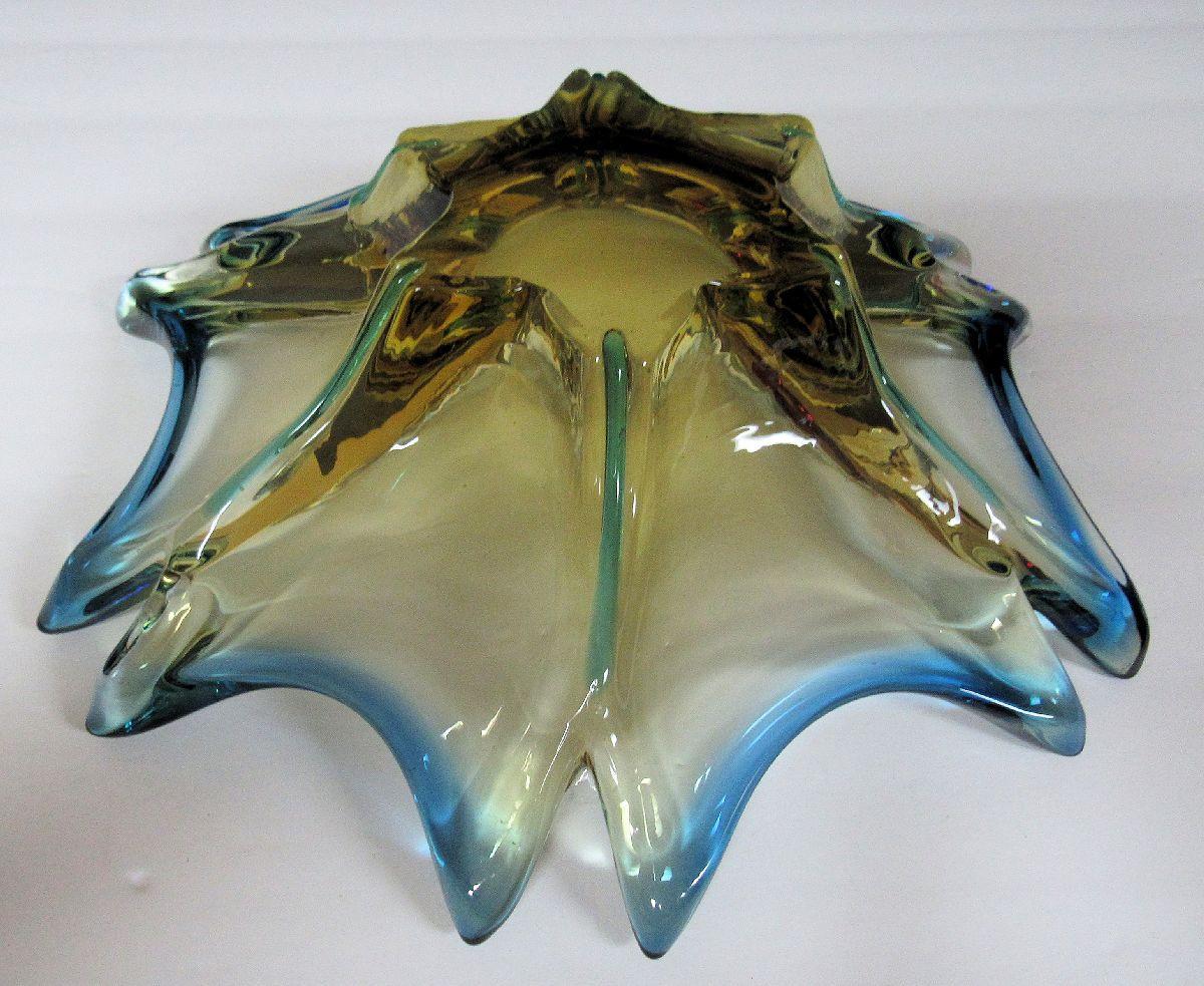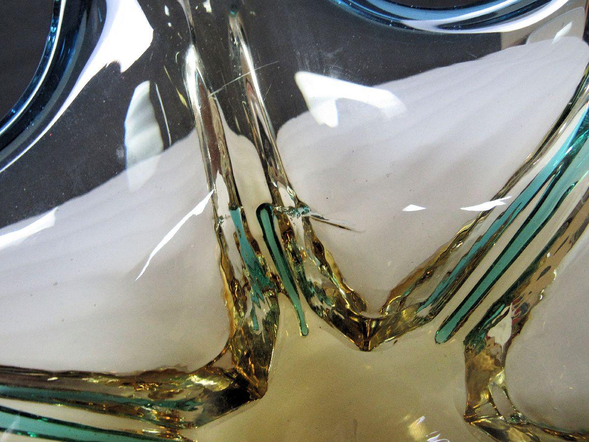 Unmarked, don't know maker. There is a large mold flaw on the bottom of one fold as seen in the last two magnified photos. Still a very nice and unusual MCM piece. Very heavy to ship.