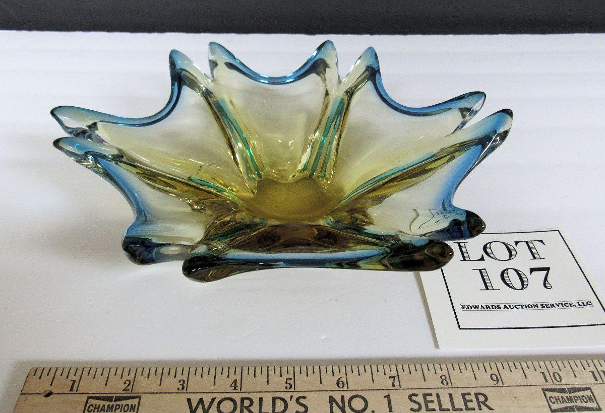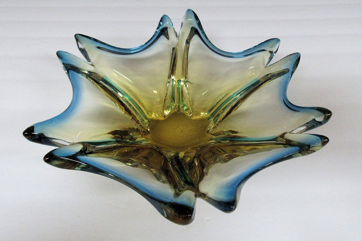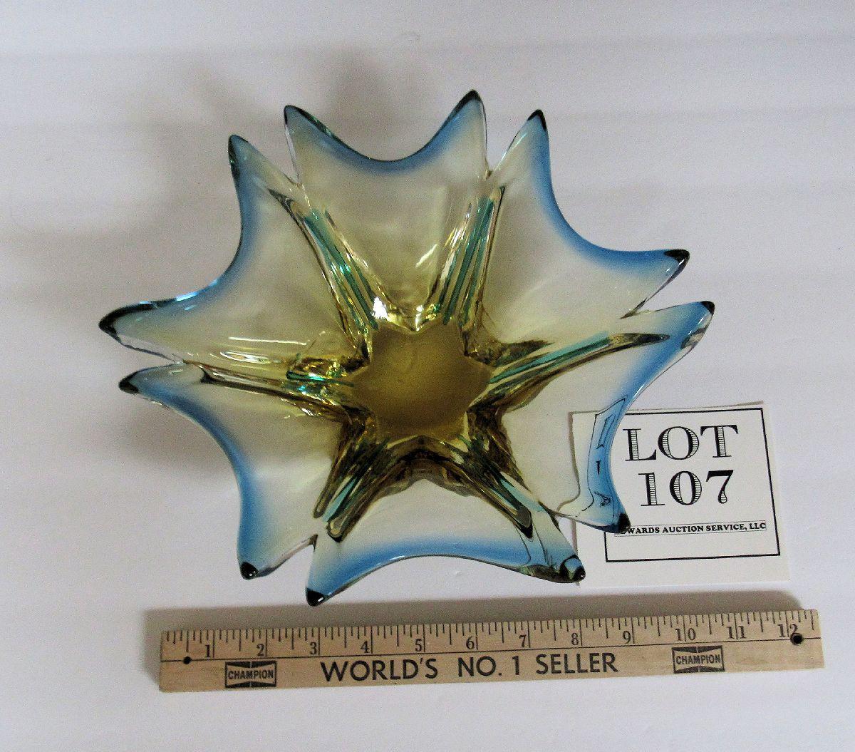 Unmarked, don't know maker. There is a large mold flaw on the bottom of one fold as seen in the last two magnified photos. Still a very nice and unusual MCM piece. Very heavy to ship.