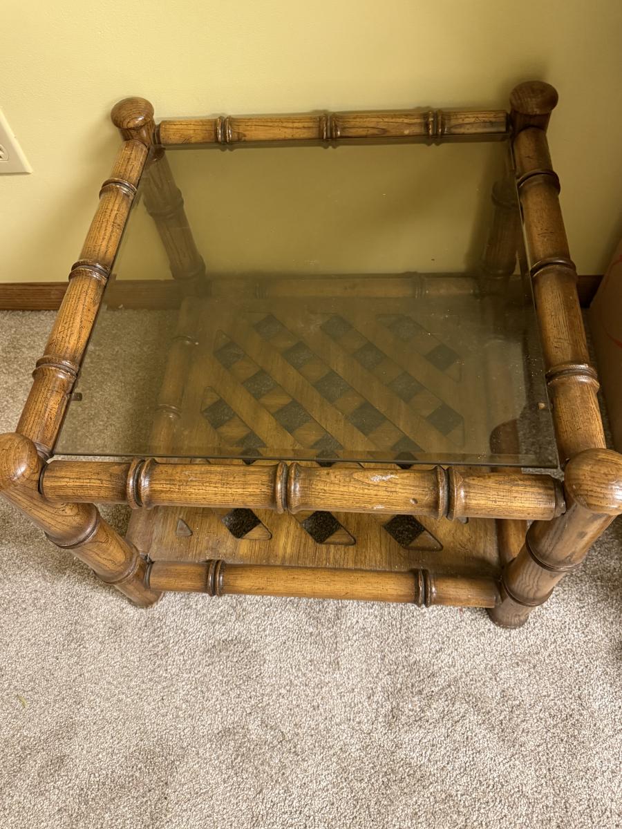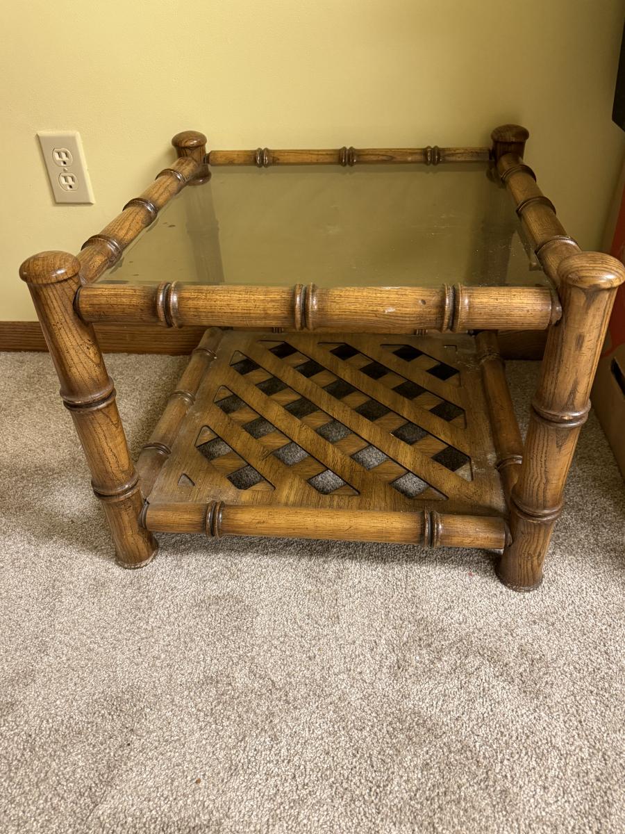 MCM Faux bamboo and rattan lattice shelf end table