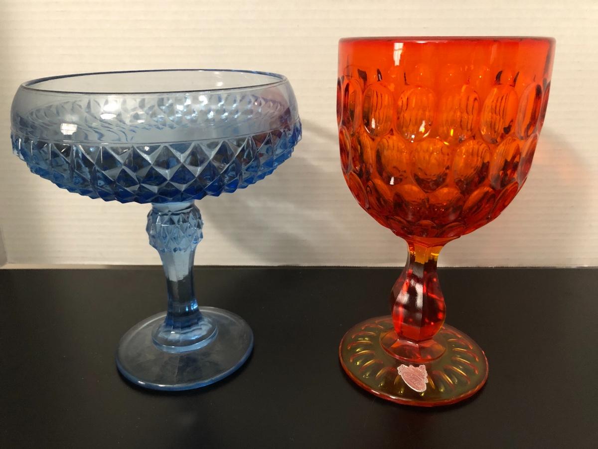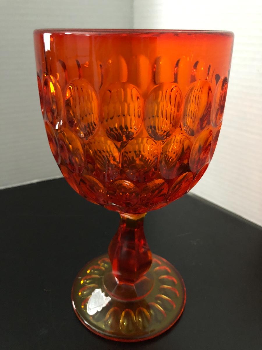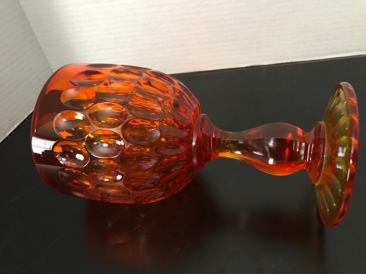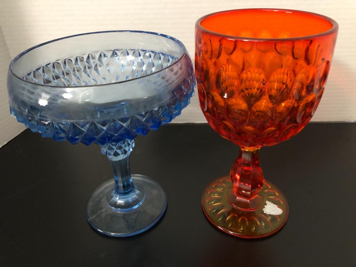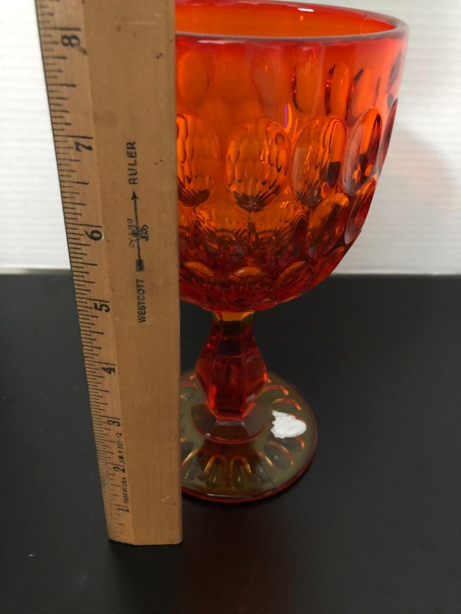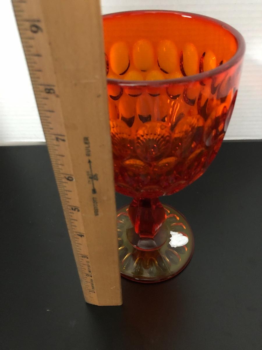 All items are sold as is, as found in the estate. Please see all photos for content, measurements and condition. Only the Amberina Orange glass goblet has a Fenton sticker.