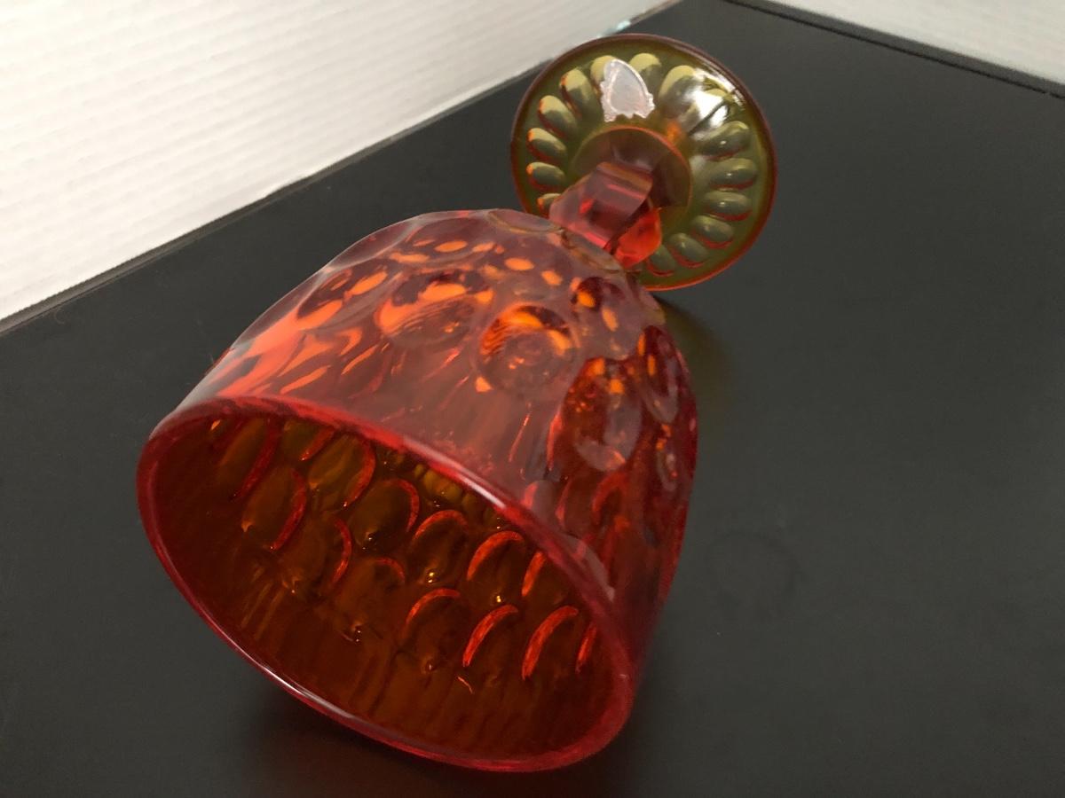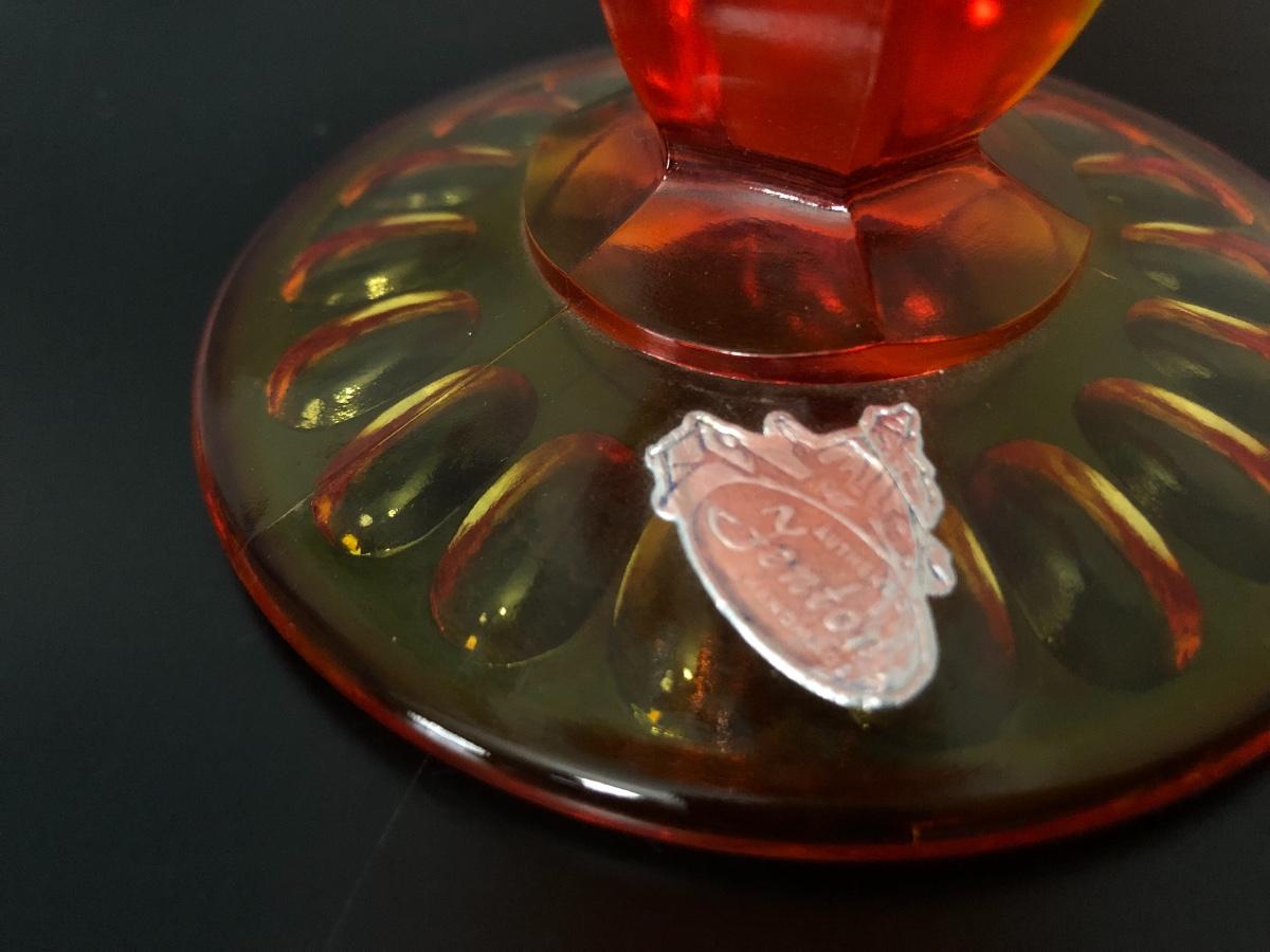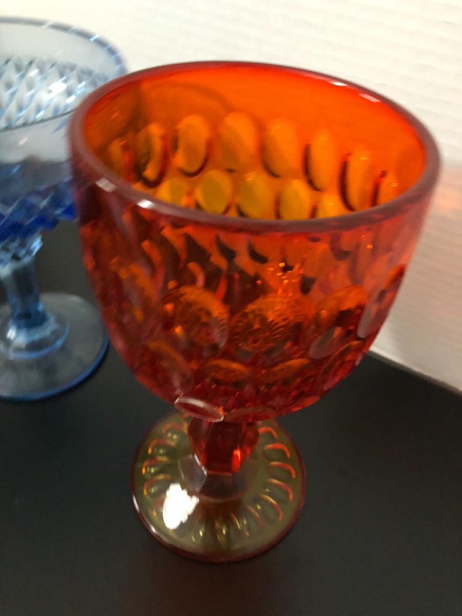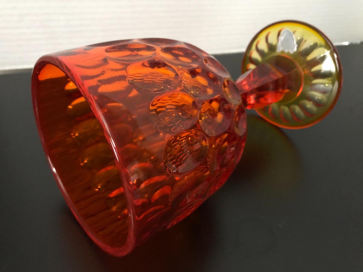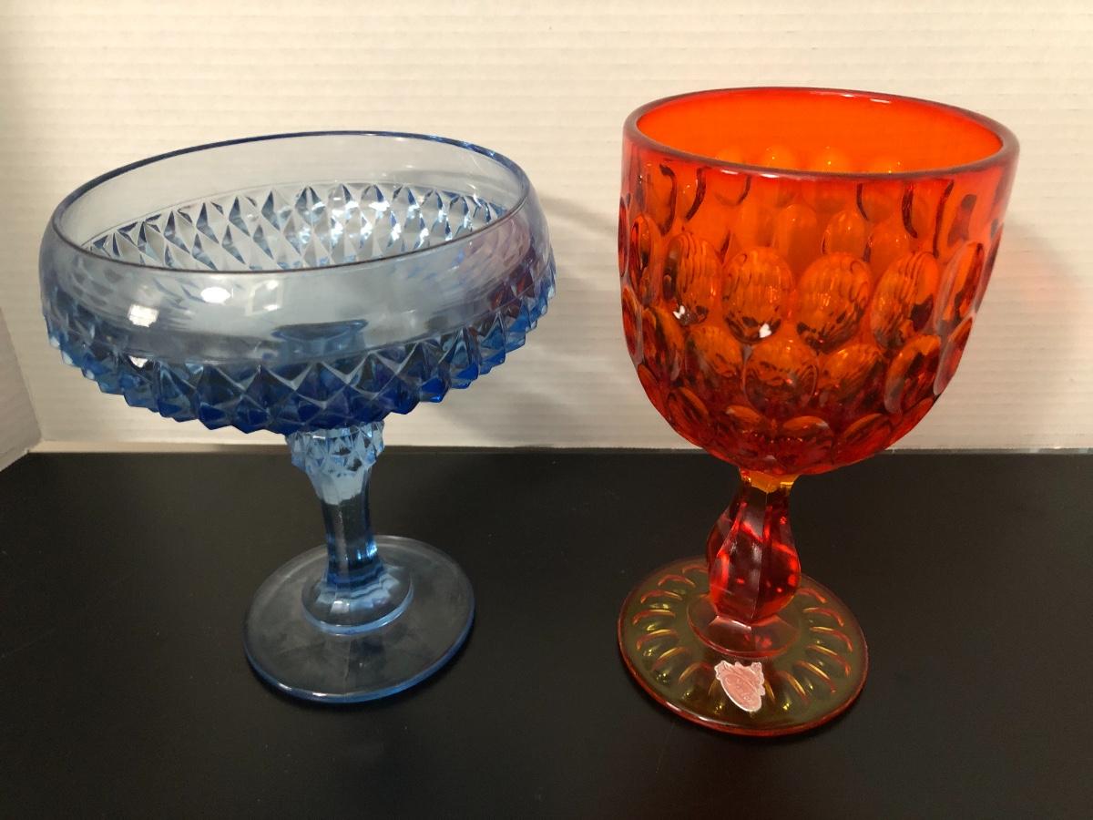 All items are sold as is, as found in the estate. Please see all photos for content, measurements and condition. Only the Amberina Orange glass goblet has a Fenton sticker.