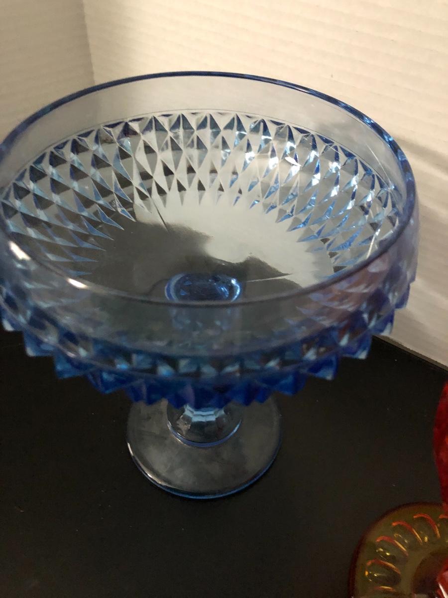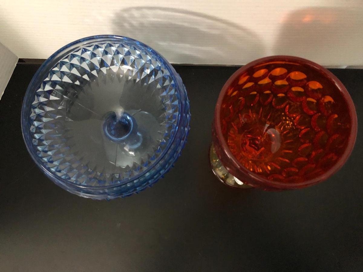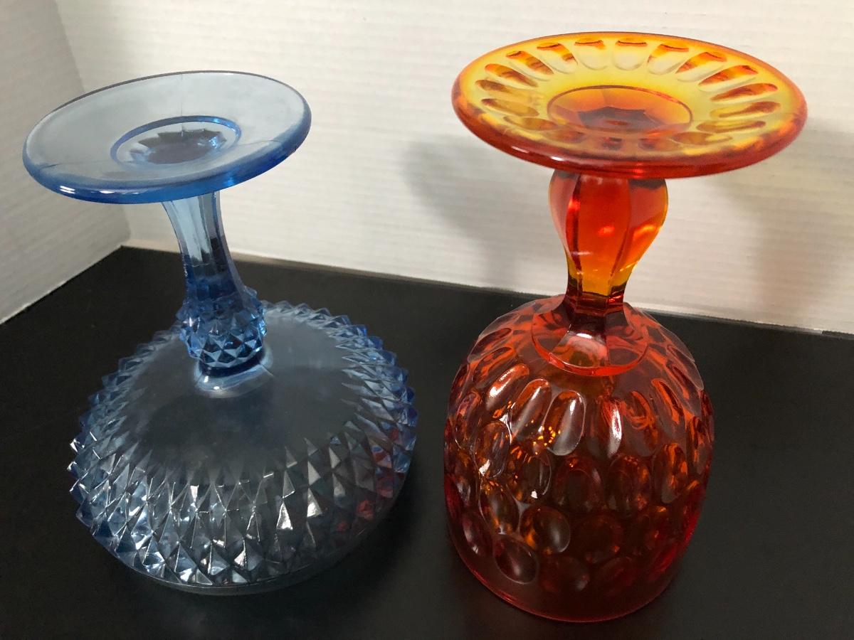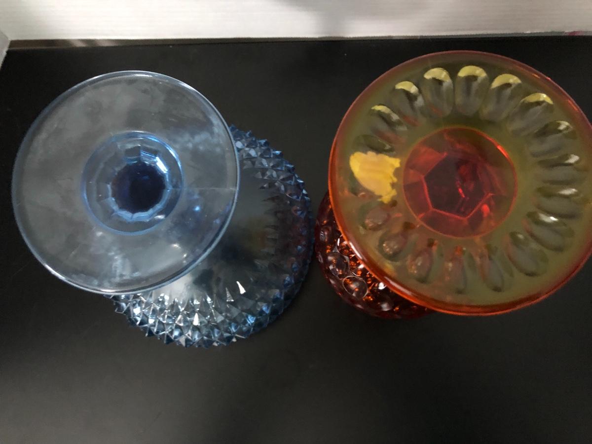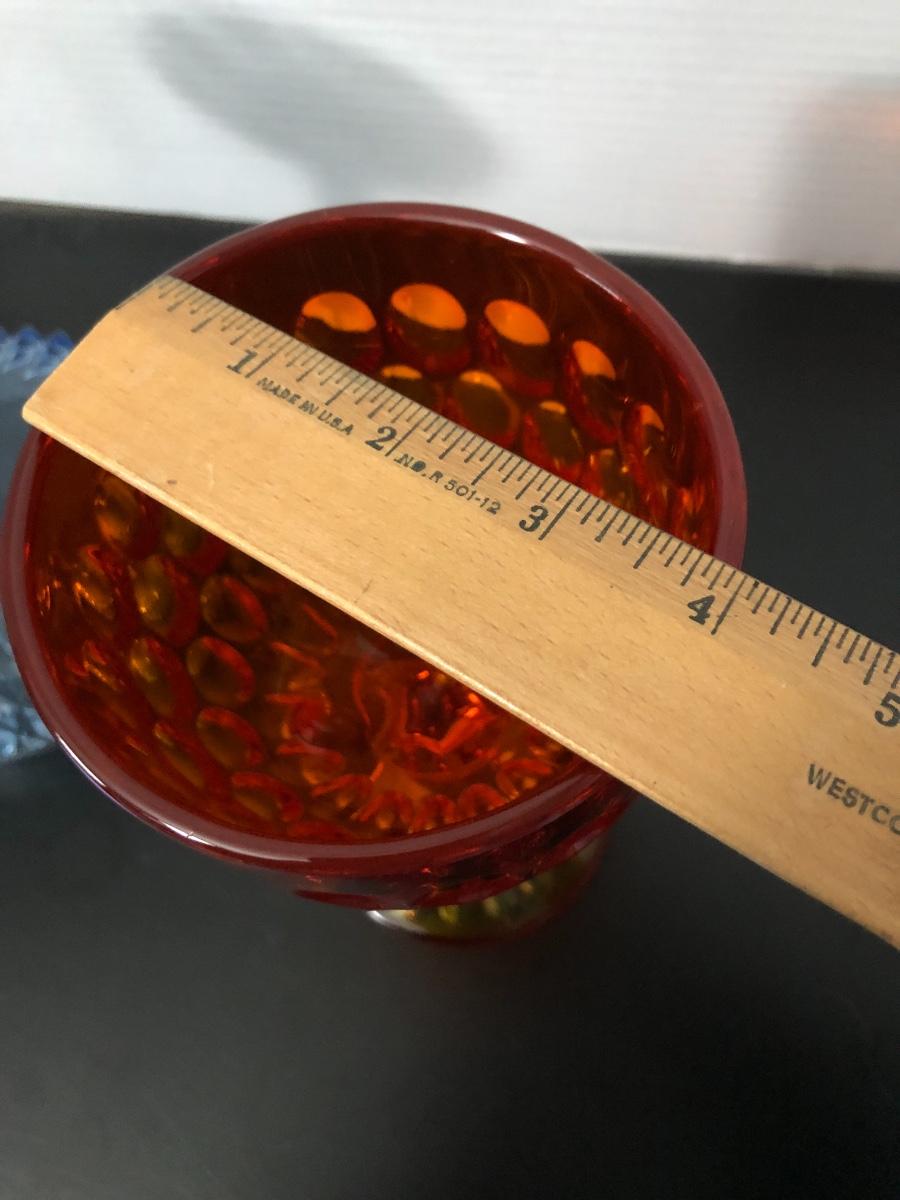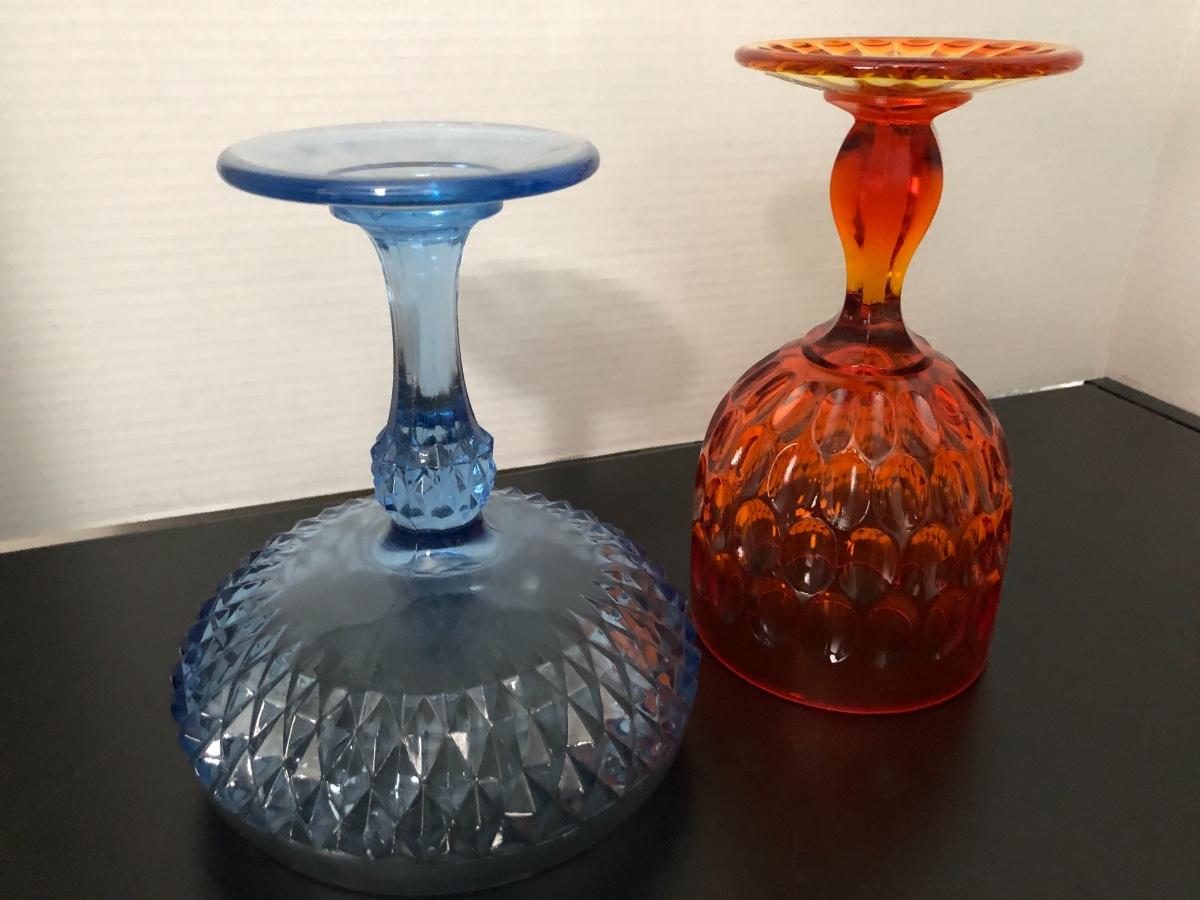All items are sold as is, as found in the estate. Please see all photos for content, measurements and condition. Only the Amberina Orange glass goblet has a Fenton sticker.