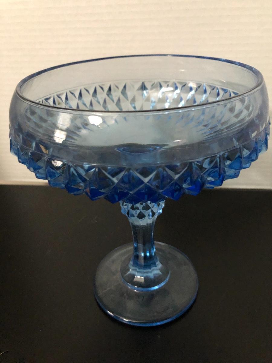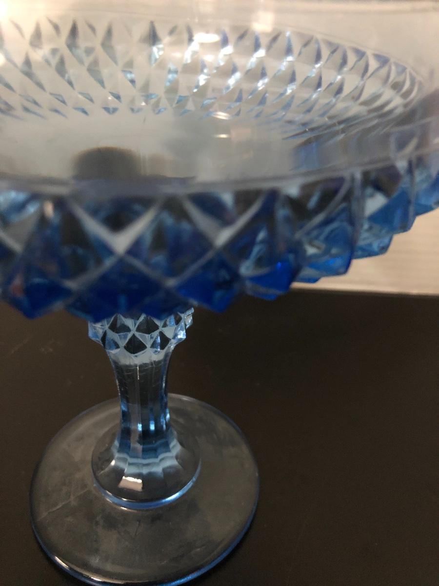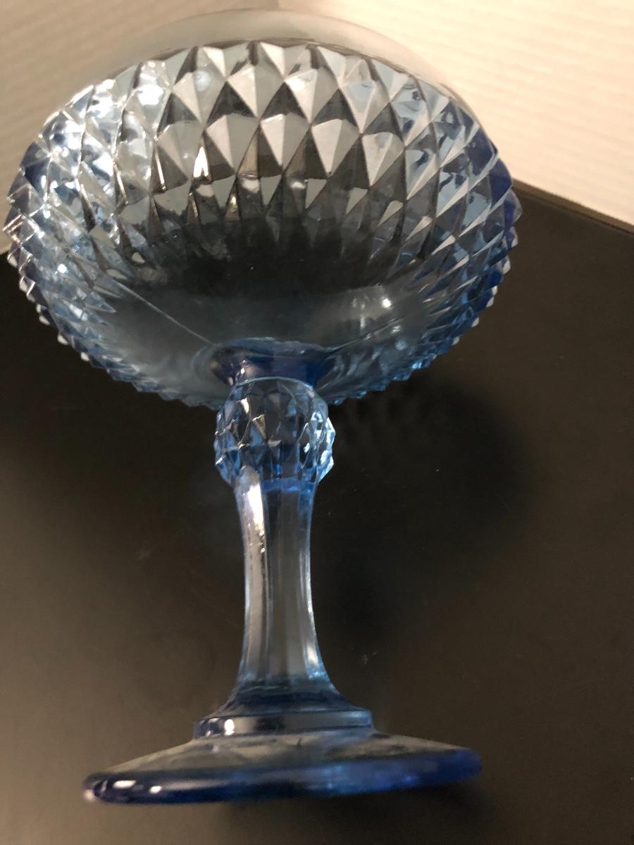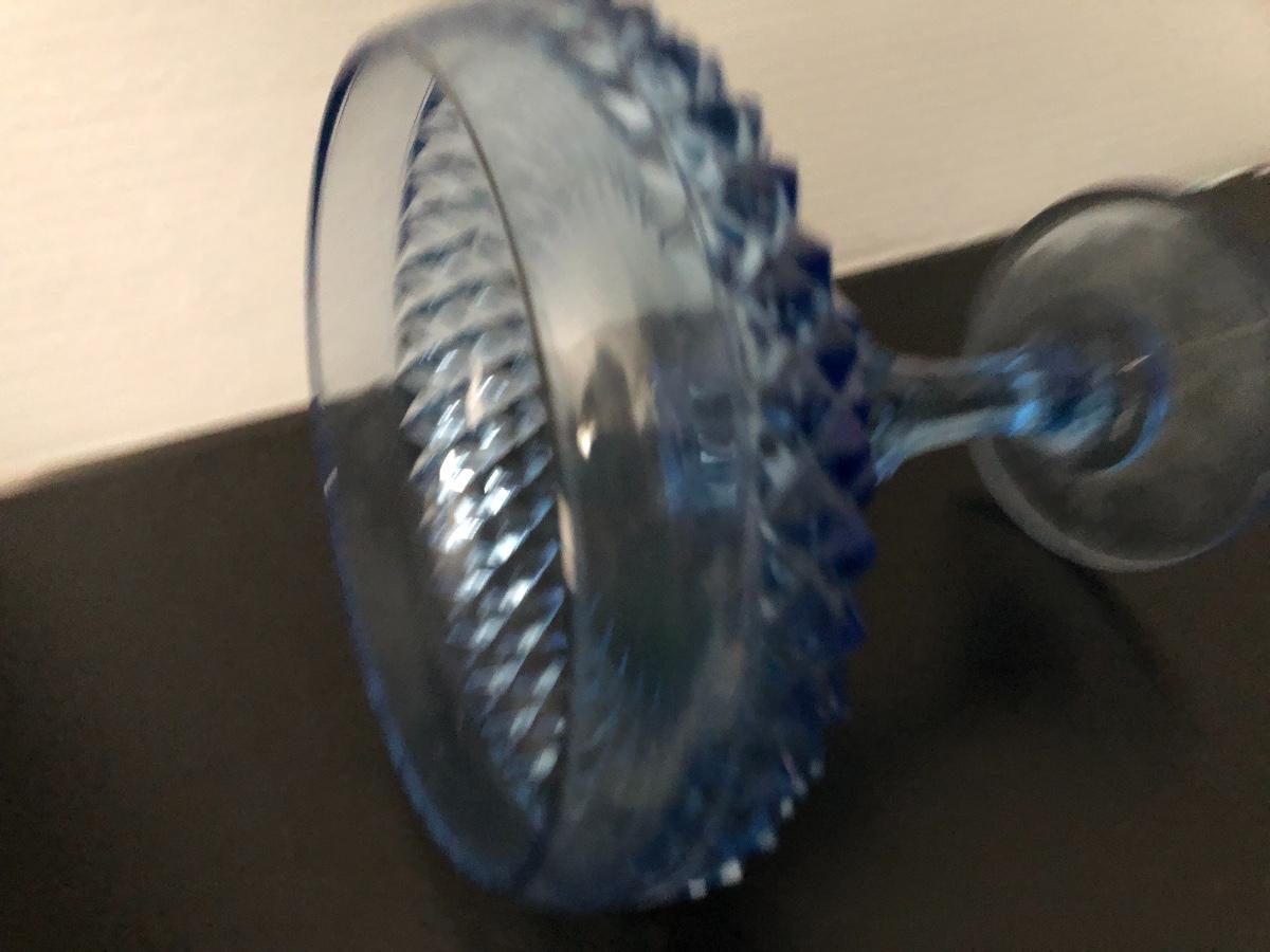 MCM Fenton Amberina Glass Goblet & Blue Diamond Cut Goblet