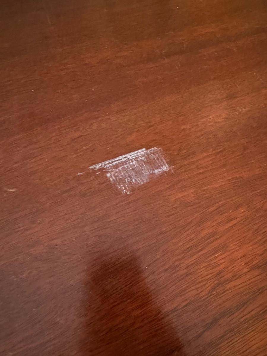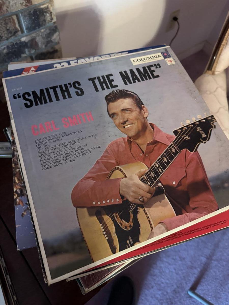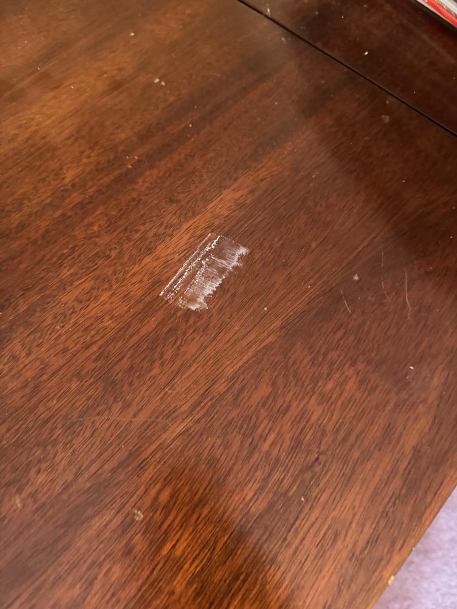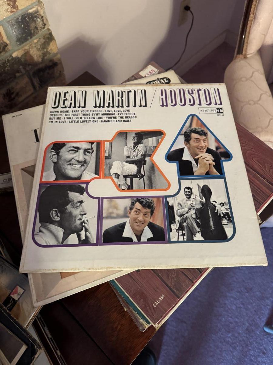 MCM console stereo as shown. Working condition but we couldn’t pick up a station. Missing the 45 holder and has two spots that need to be cleaned from duct tape. She had a picture stuck on it.