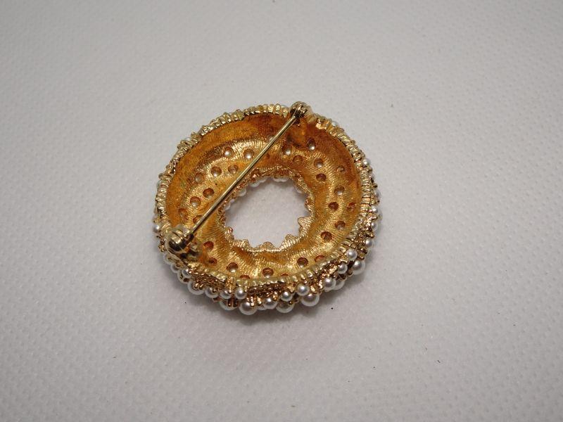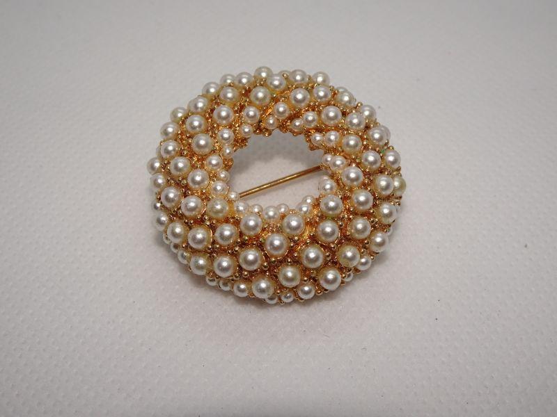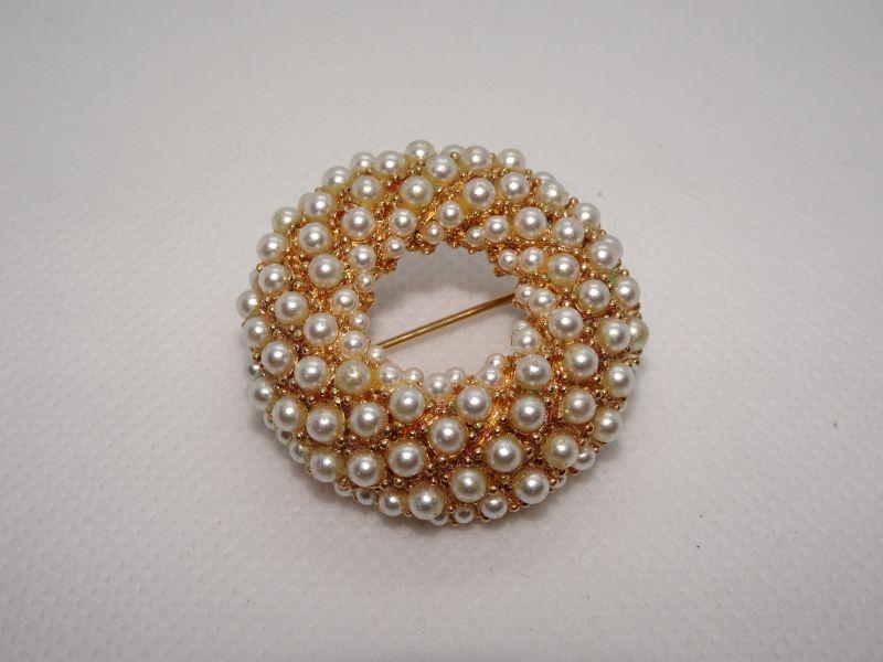 MCM Gold Tone Pearl Cluster Brooch, Signed