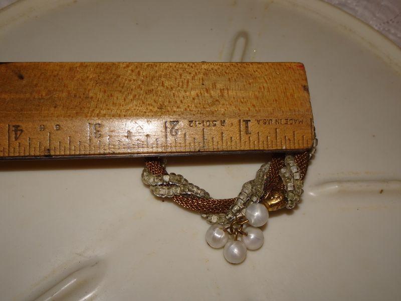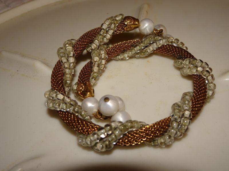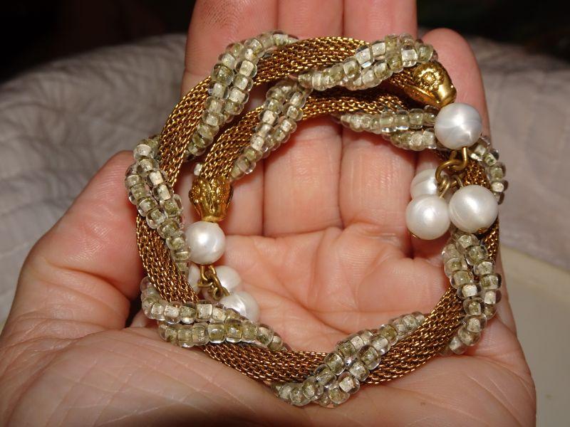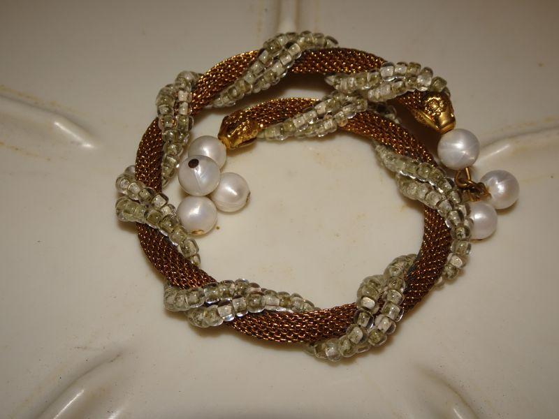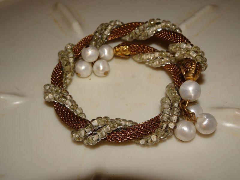 MCM Gold Tone & Pearl Wire Wrap Cuff Bracelet