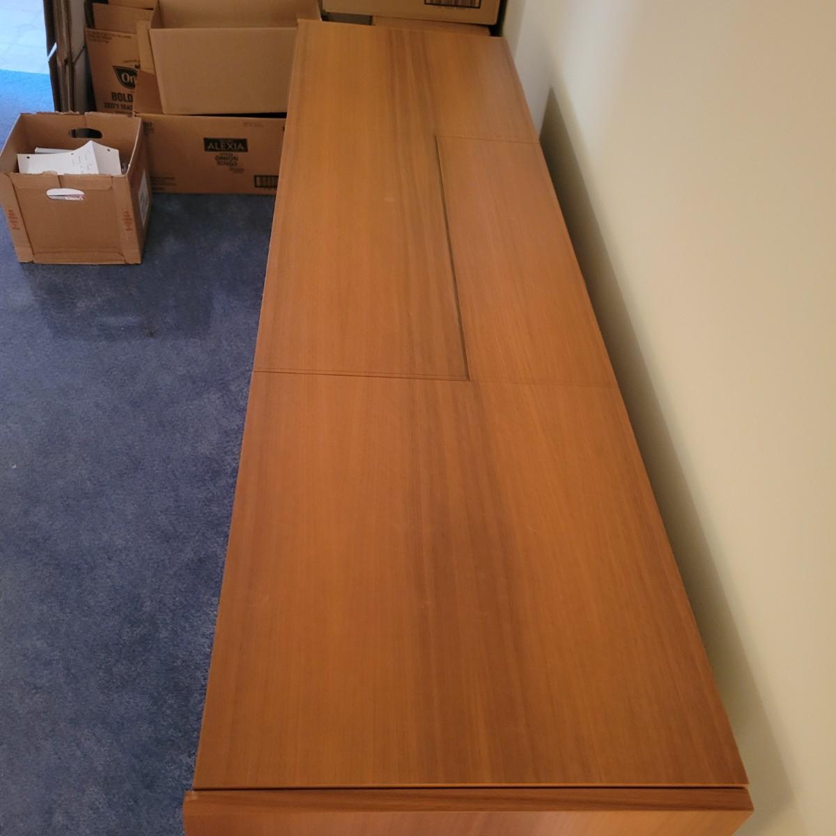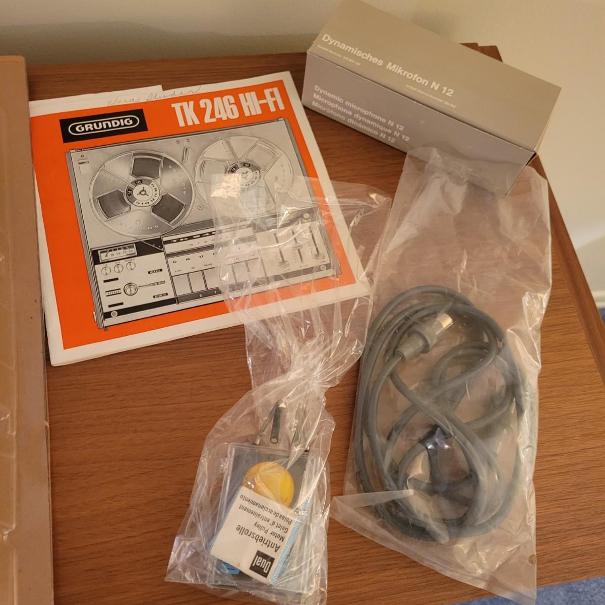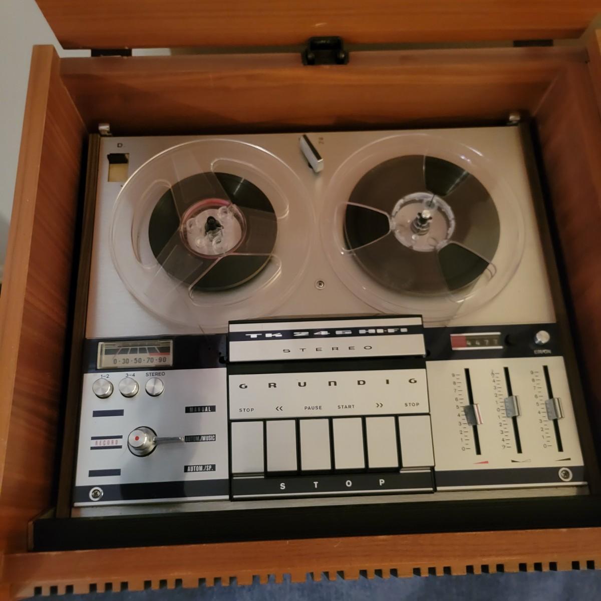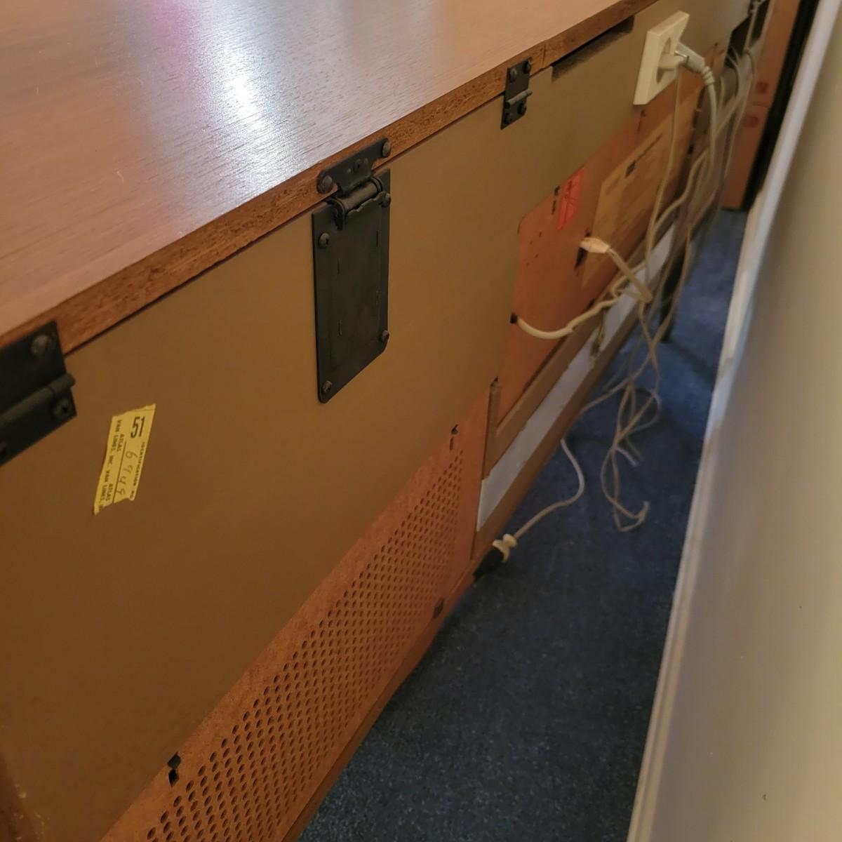 A Grundig Rossini 3 stereo console cabinet that powered on when plugged in. It has a sleek, MCM design that includes a reel to reel player, multi band radio and a turntable. It measures approximately 61" x 16.5" x 29"H. It includes an assortment of accessories including 18 magnetic tapes that are not labeled. The controls on the multi band receiver are crackly when adjusted and the reel to reel works, but the turn table did not power on. There is a broken plate on the back where a jack plugs in and there are some minor scratches and blemishes to the cabinet exterior. Local pickup only. Winning bidder must bring assistance to help move and load this item due to its weight and/or size.