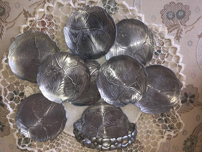 MCM hammered aluminum coaster set of eight. Excellent condition no bending scratching or damage