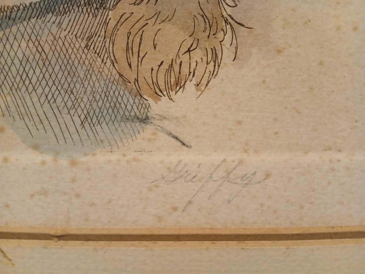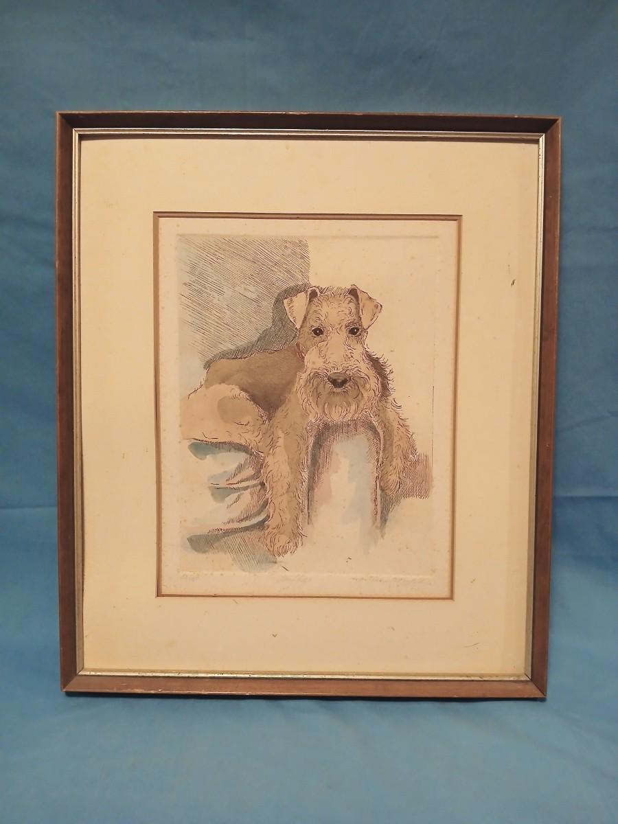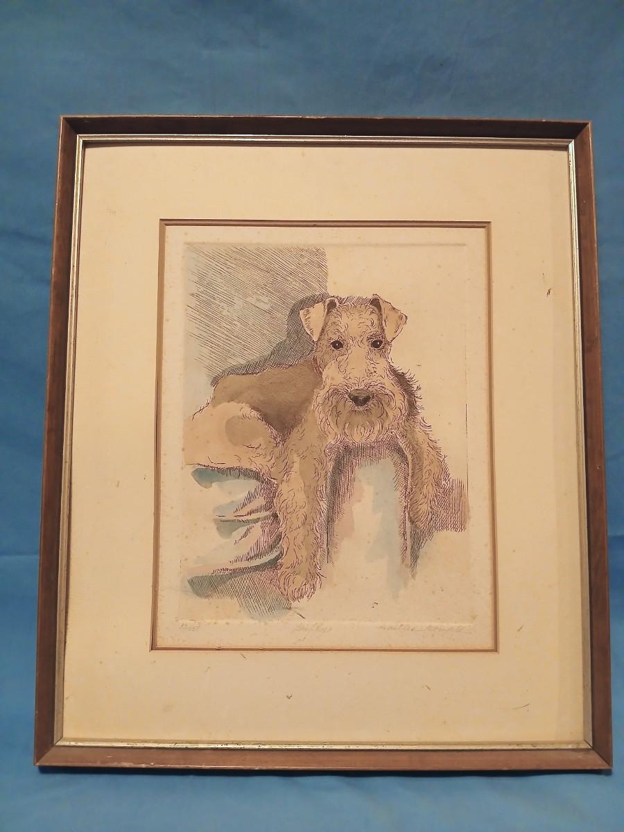 MCM Hand Colored Engraving "Griffy" Airdale Terrier by Millie Kornfeld in Frame, numbered 53/150