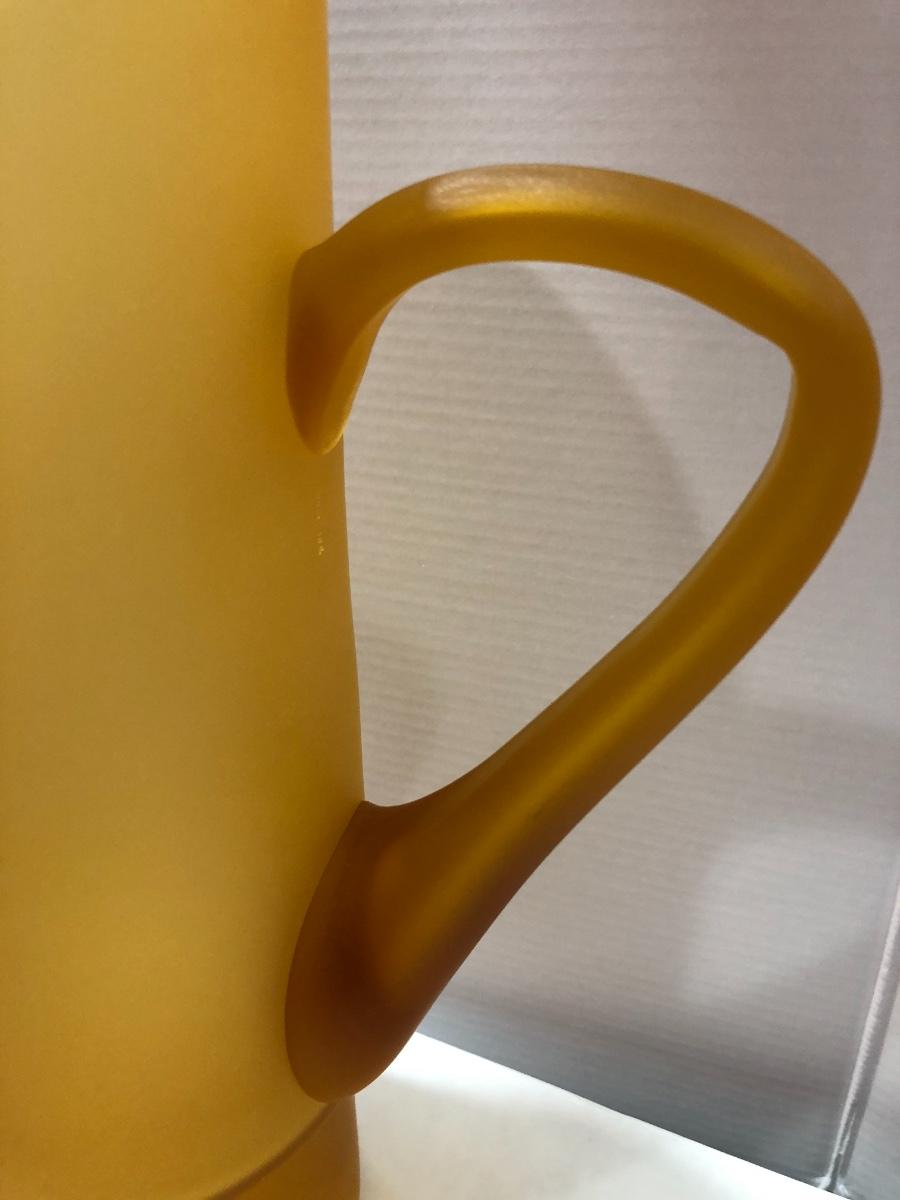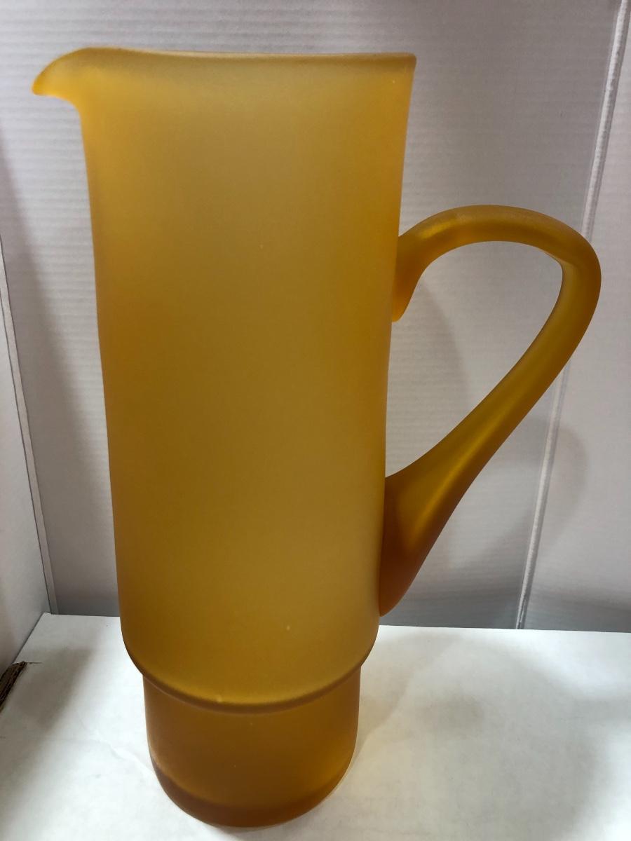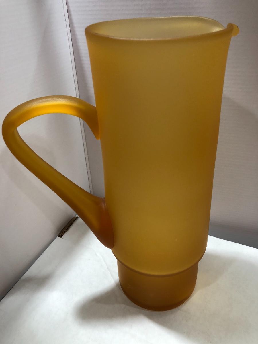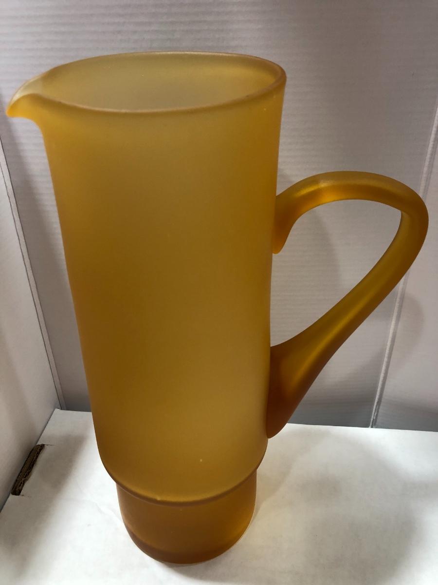 Hand Blown Frosted Amber Glass Pitcher