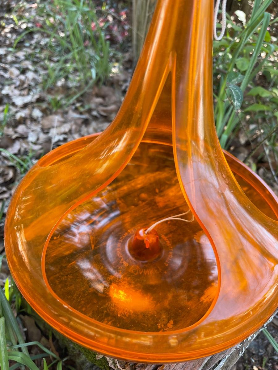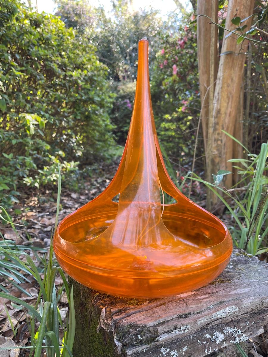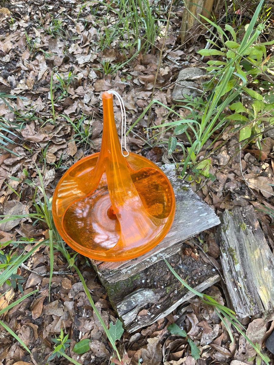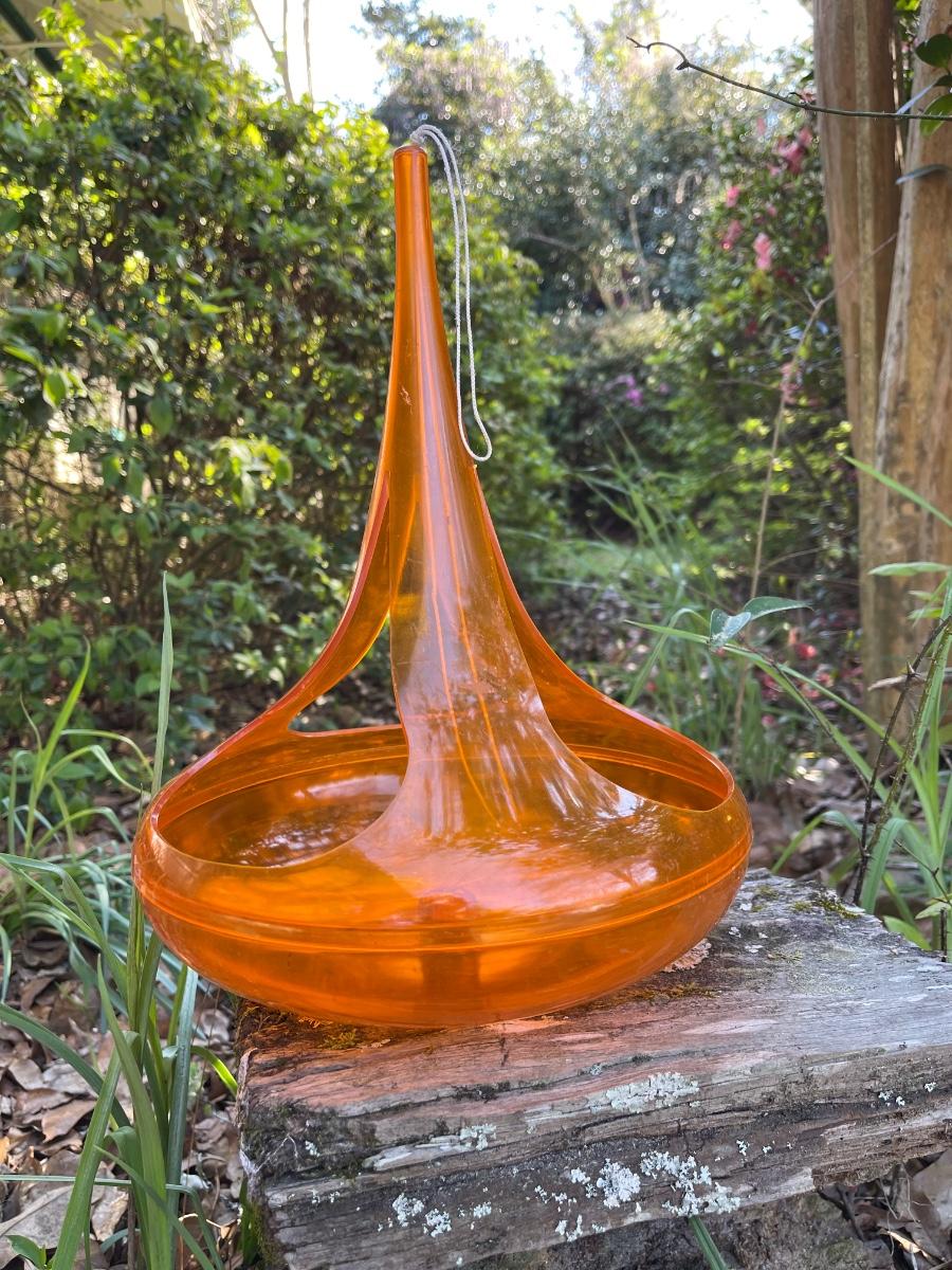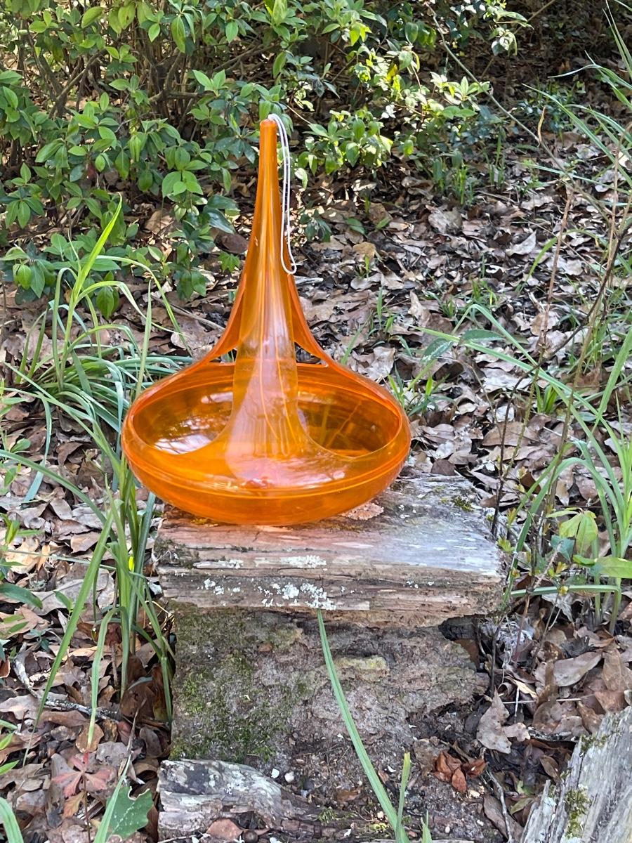 This cute thing may be a hanging planter. The company on the bottom maser terra-cotta planters. I first thought it was a bird feeder. It actually reminds me of the old terrariums we all had in the 70s. Use it as you wish. It comes apart. It’s super cool. Has a string with it used to hand it.